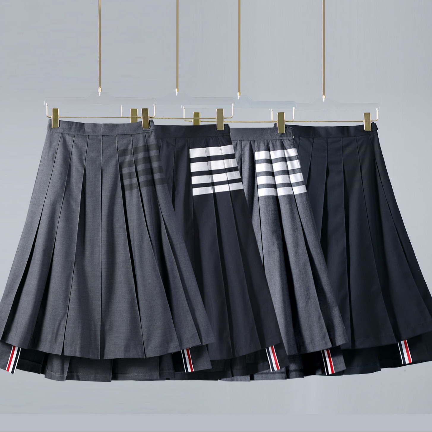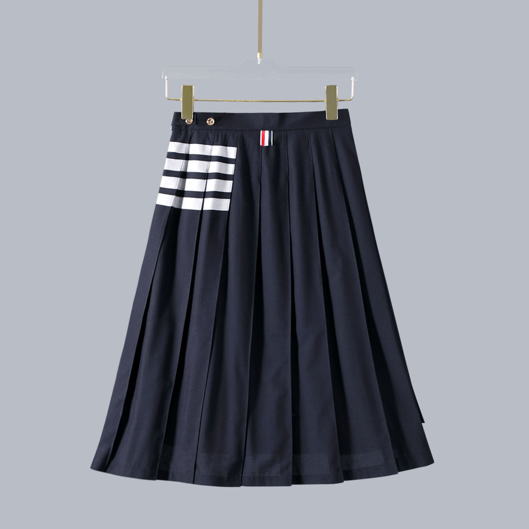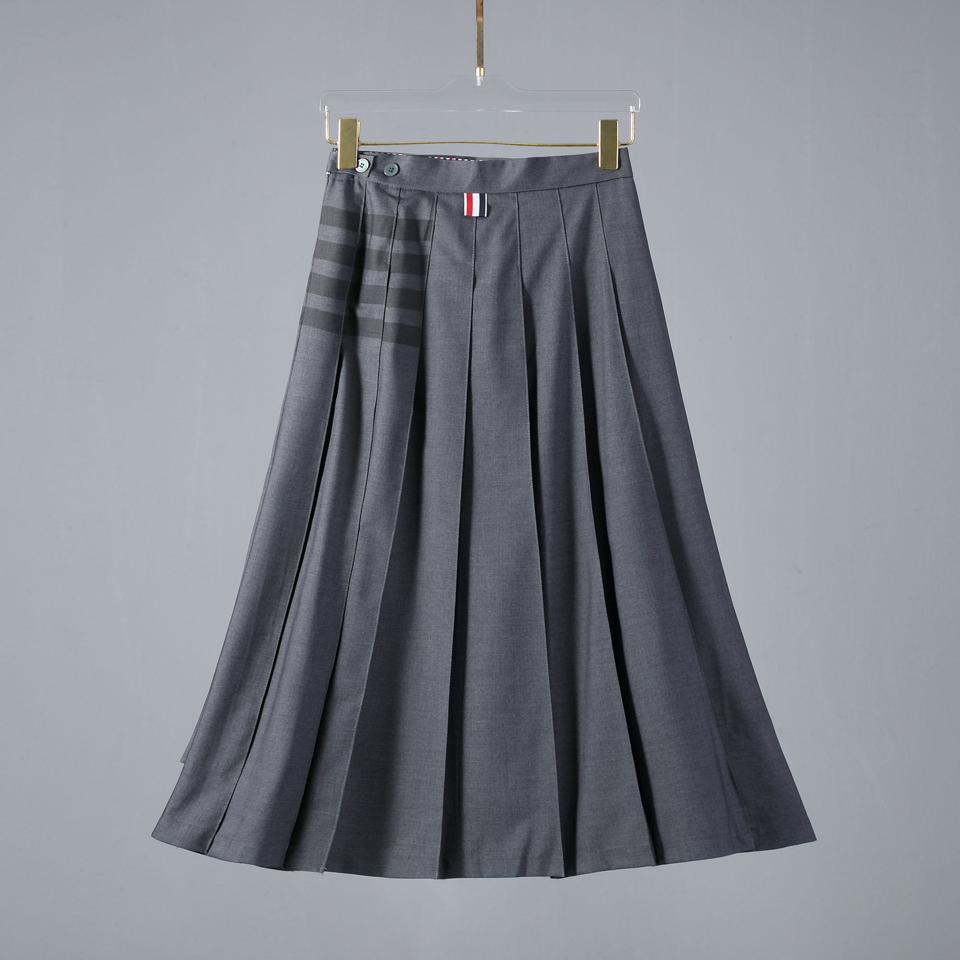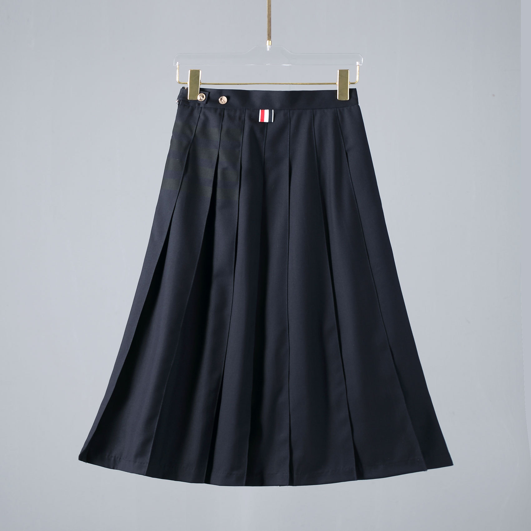 スポットTB JLプリーツスカート ハイウエスト 痩身 4本ストライプ アシンメトリーロングスカート Aライン 万能四季ハーフレングススカート レディース
