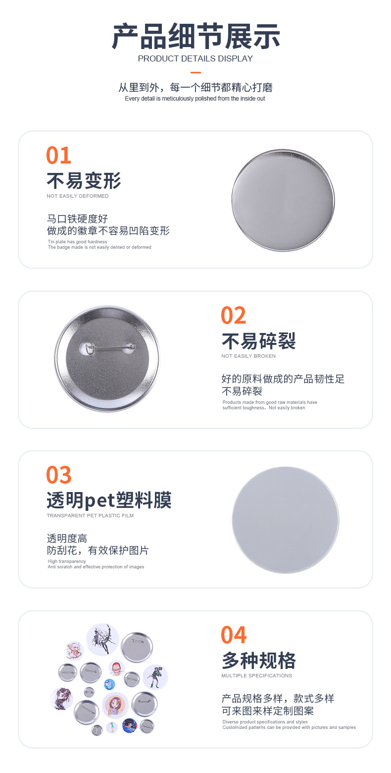 温州の強力な工場から直接供給されるブリキ製消耗品、つや消しバジ材、DIYバッジ材料、ピンバッジアクセサリー