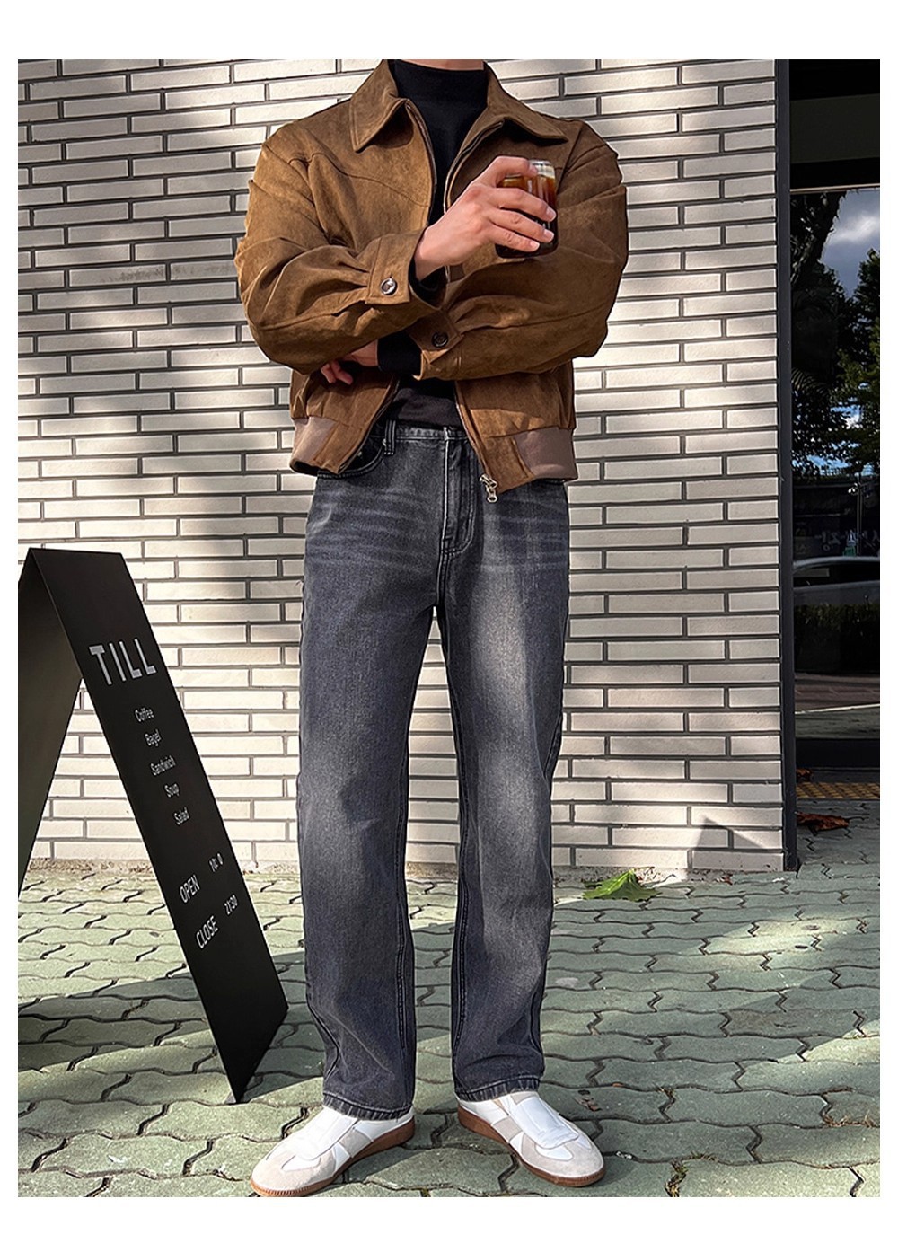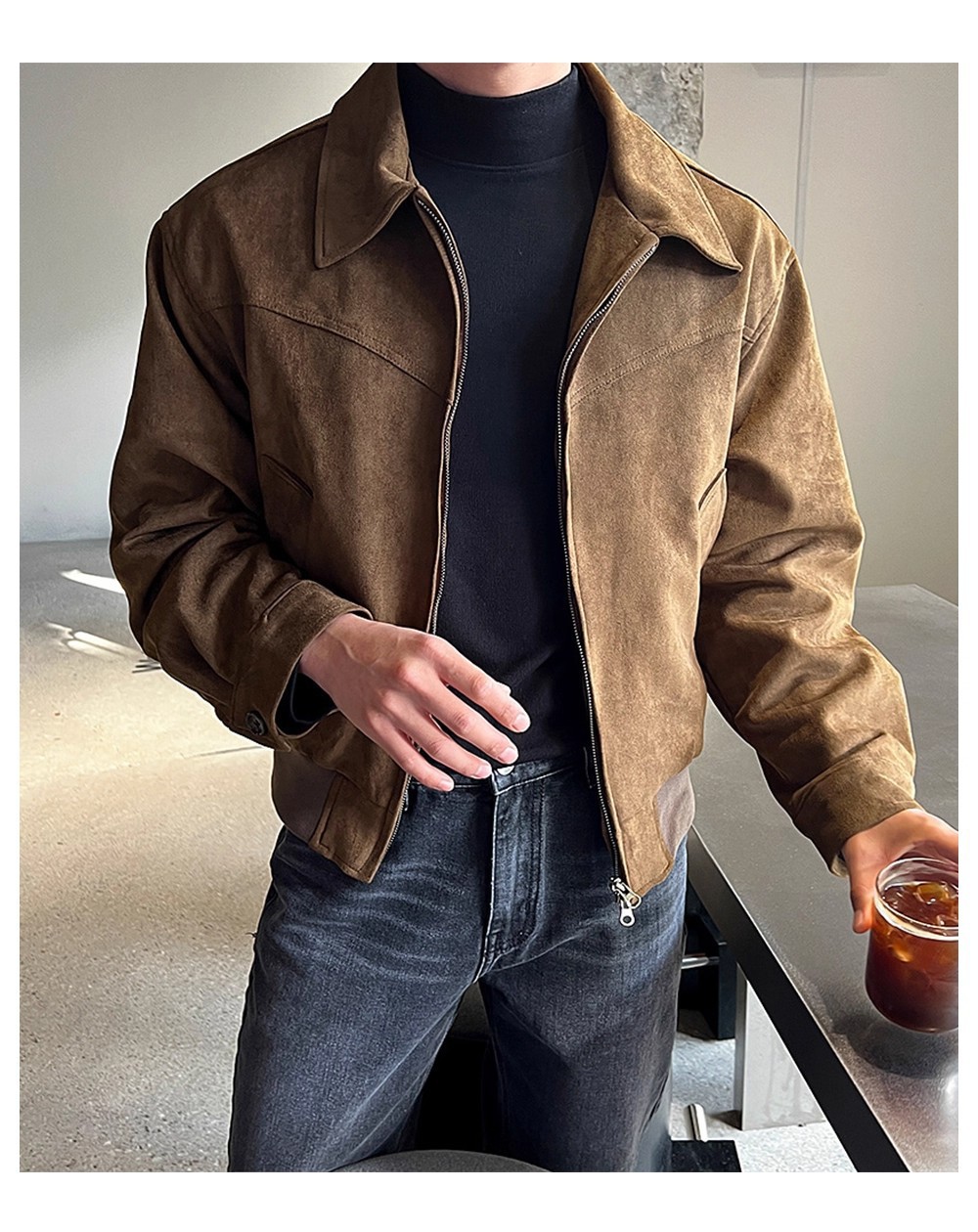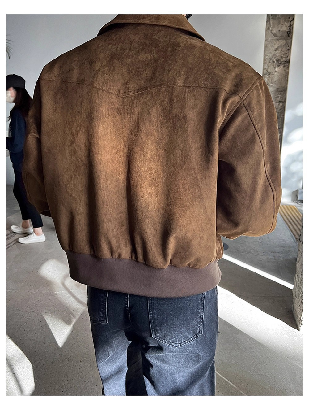 秋冬の韓国のメンズの短いタイプのゆったりした襟とベルベットのジッパーのスエードの飛行ジャケットの香港風のコートの潮