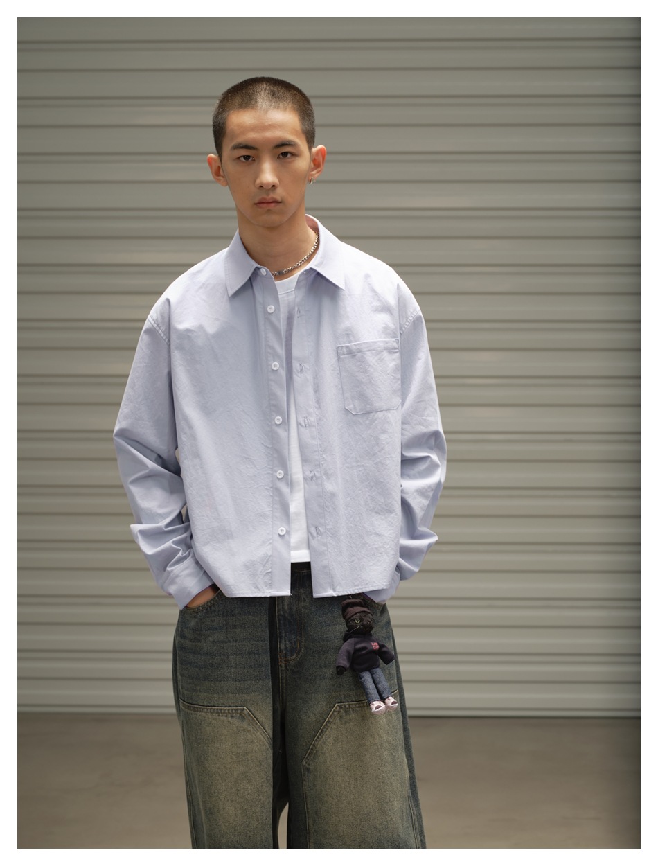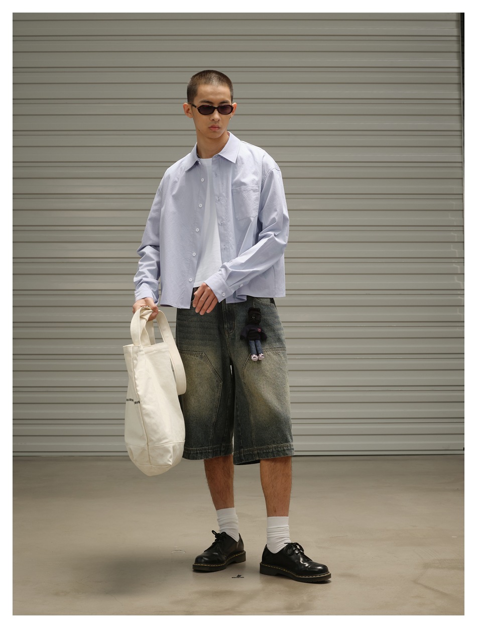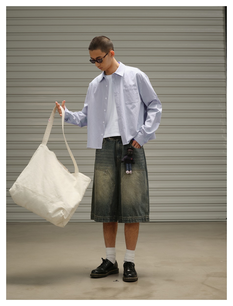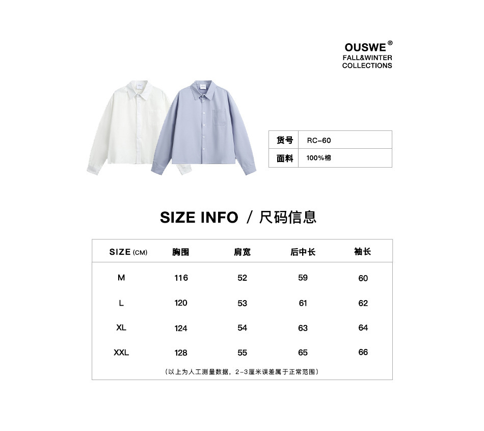 OUSWE国潮小衆基礎モデルアメリカ復古ポケット工装シャツ男性ゆるい長袖ショートコートrc 60