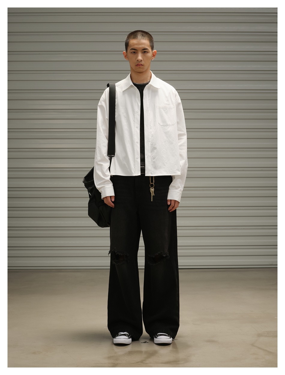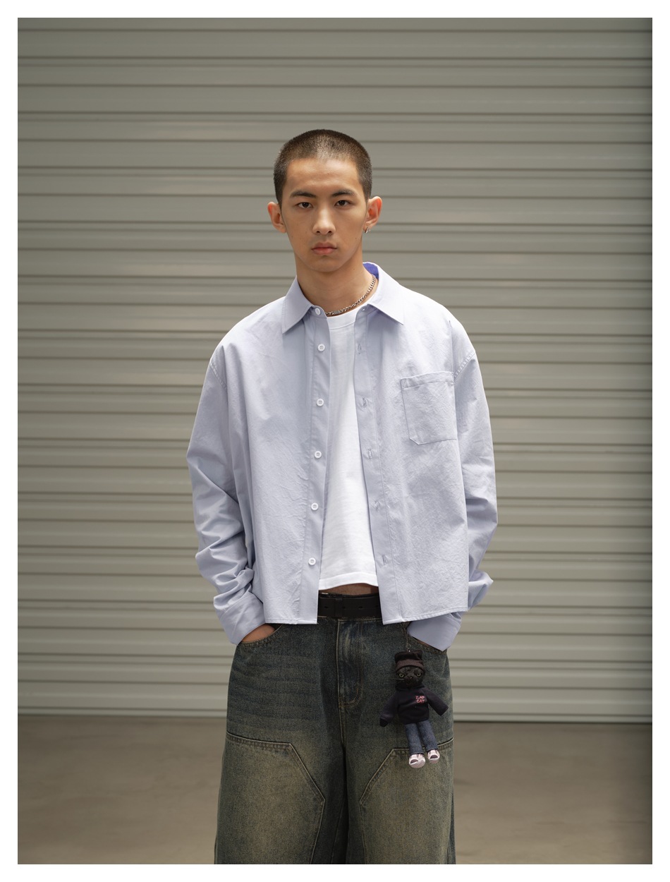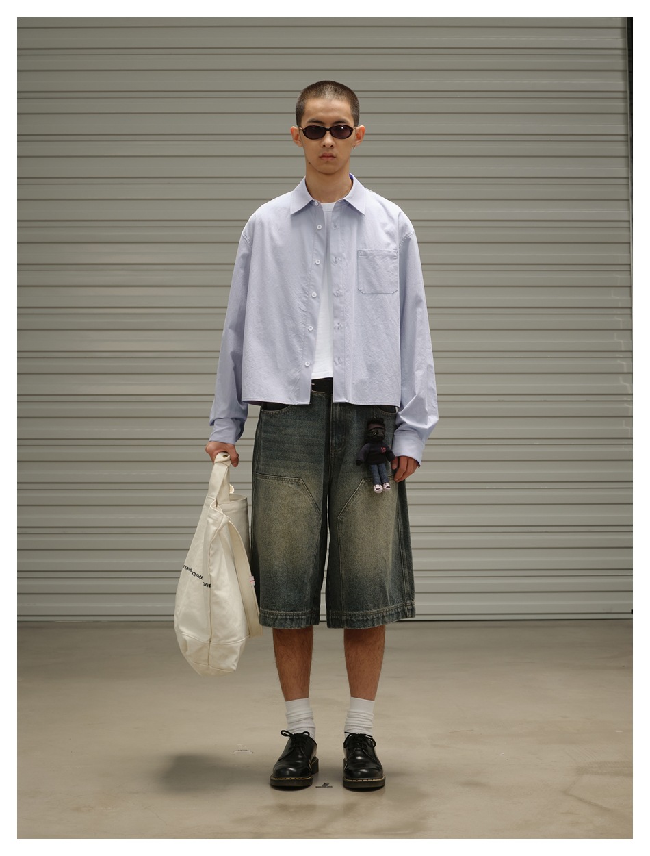 OUSWE国潮小衆基礎モデルアメリカ復古ポケット工装シャツ男性ゆるい長袖ショートコートrc 60