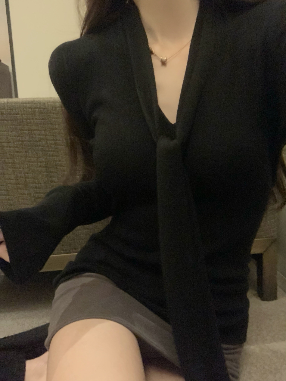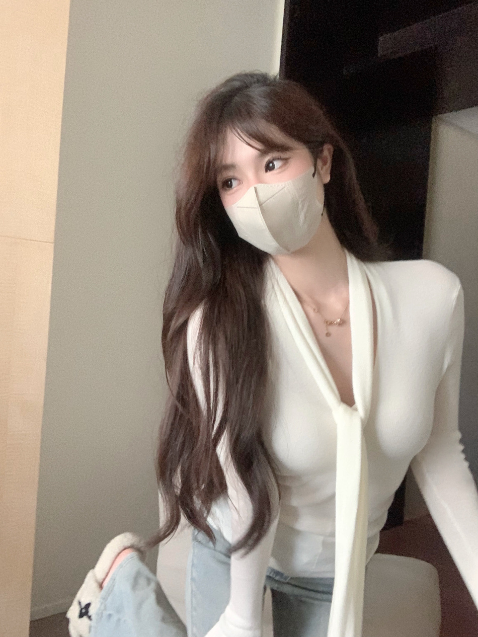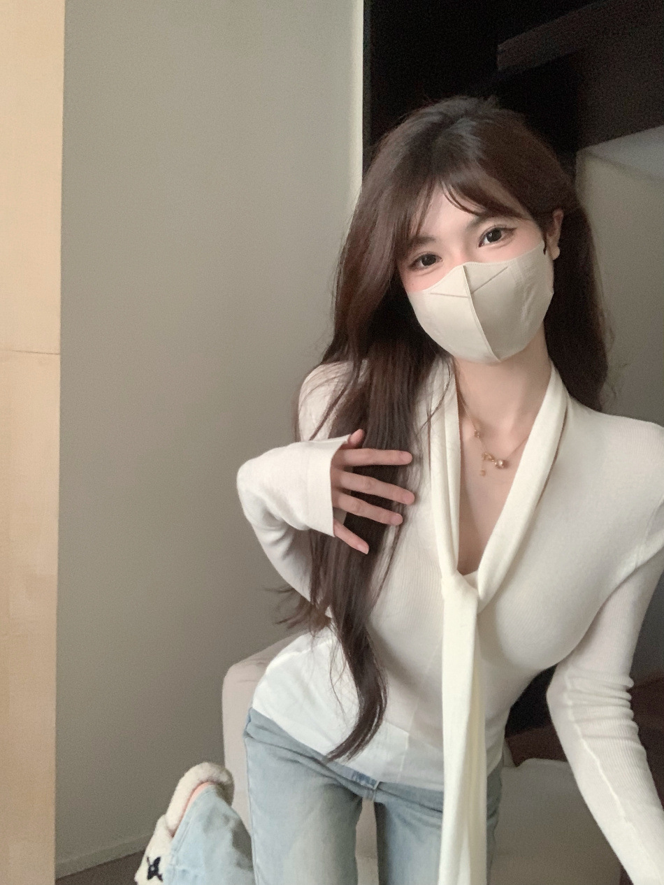 5110#内搭打底纯欲风V领针织衫女2023秋冬新款修身毛衣温柔上衣