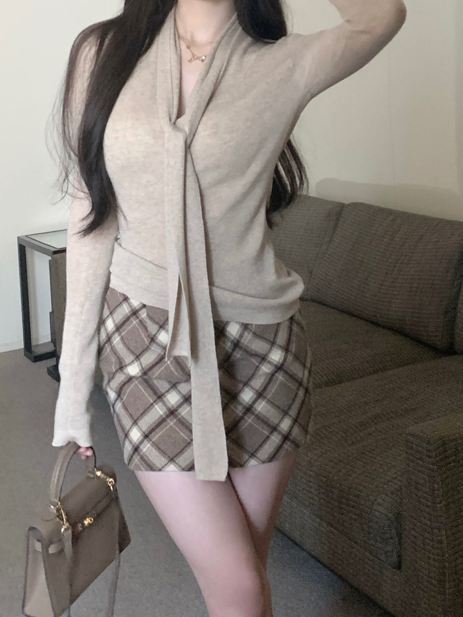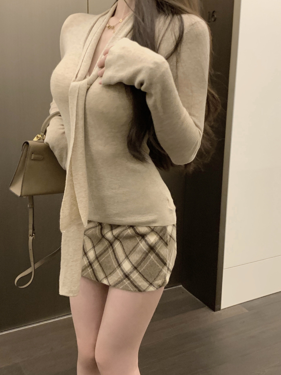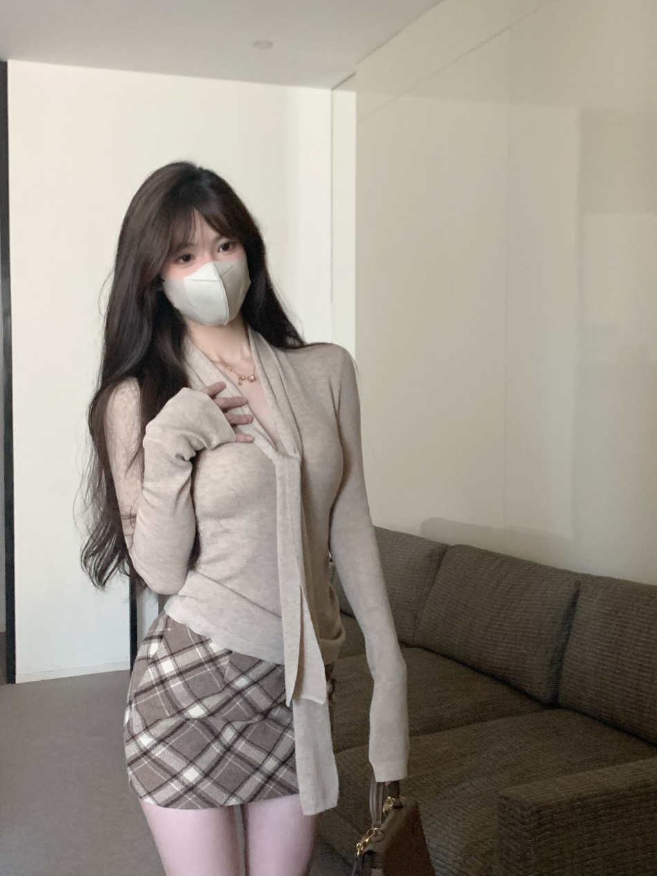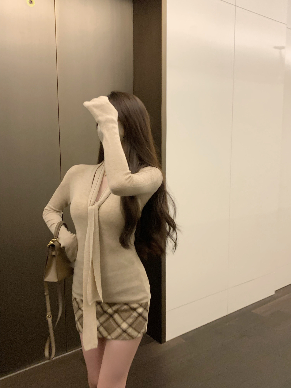 5110#内搭打底纯欲风V领针织衫女2023秋冬新款修身毛衣温柔上衣