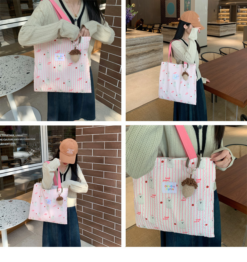 ストライプの発泡二重のショルダーバッグは2024年の春と秋の新型の大容量の小さい潮の猫の学院の風の手提げの特包を包みます。