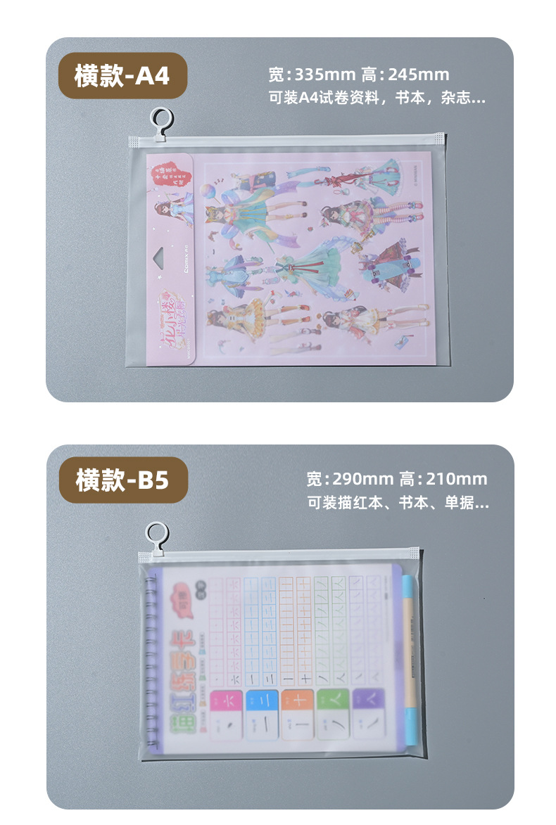 横型スタイル A4 /335*245MM,横型スタイル B5/290*210MM,横型スタイル A5/250*188MM,横型スタイル A6/230*130MM,立体文具収納袋 230*100MM,横型スタイル A7/175*130MM