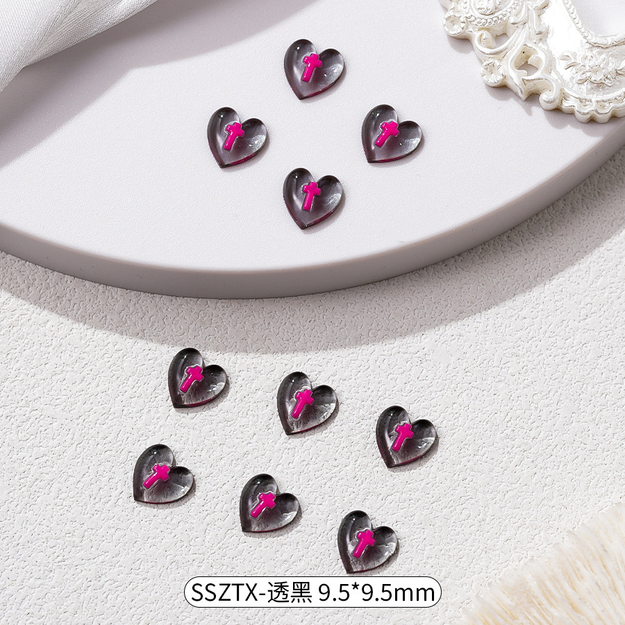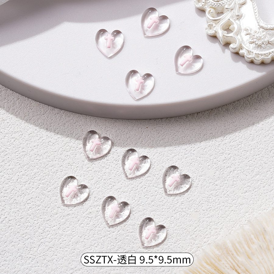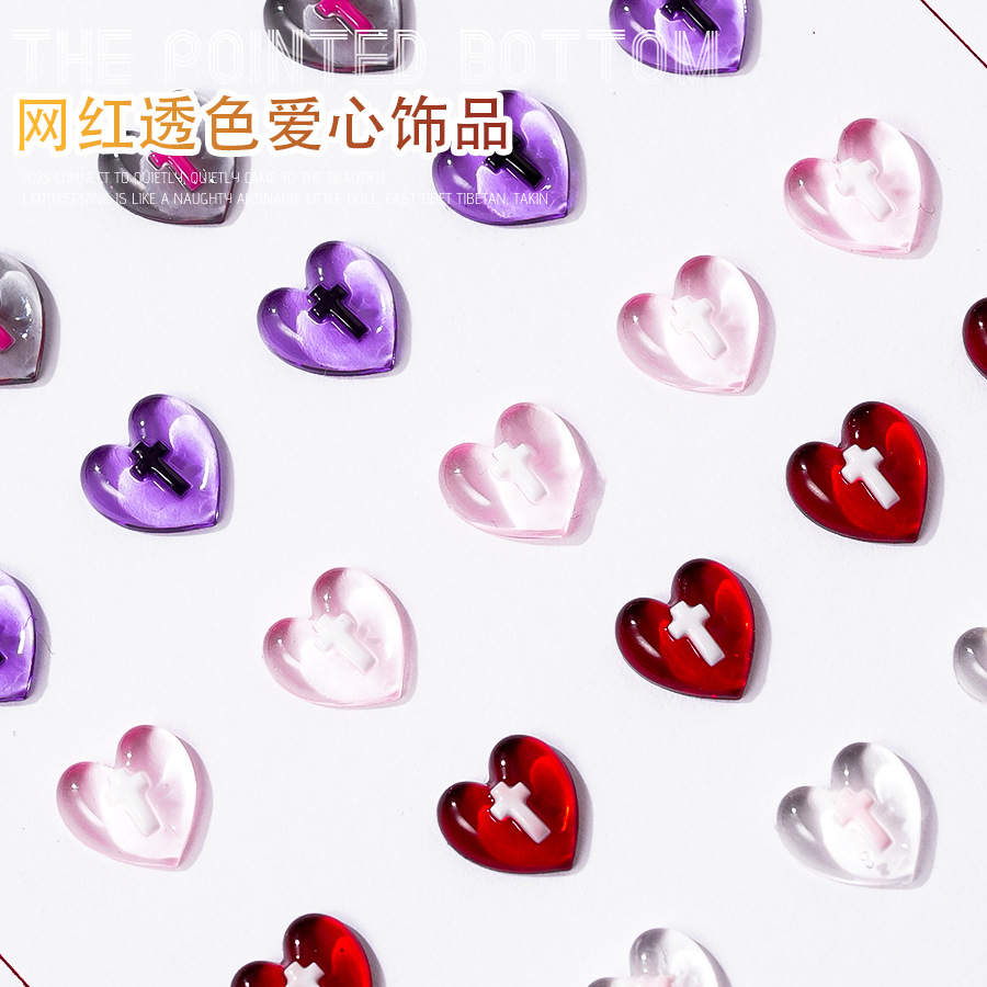 ネイルアクセサリー樹脂透色氷糖ドリルネット赤愛十字架水晶ダイヤモンド平底爪アクセサリー卸売り