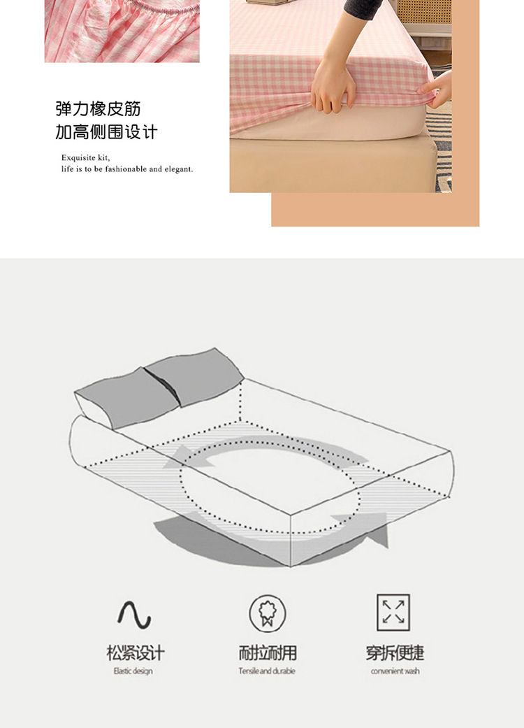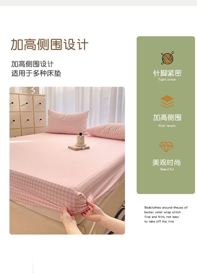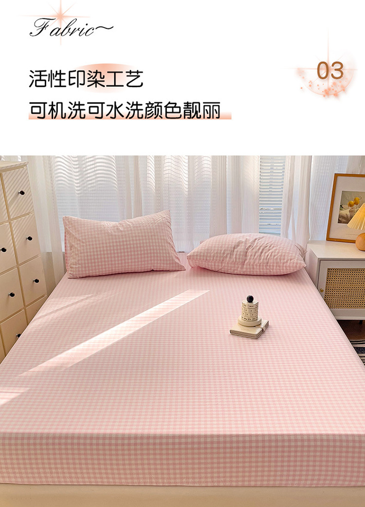Ins少女心クリーム風格子水洗浄綿ベッドカバー全ベッドカバー席夢思マットレス保護カバー