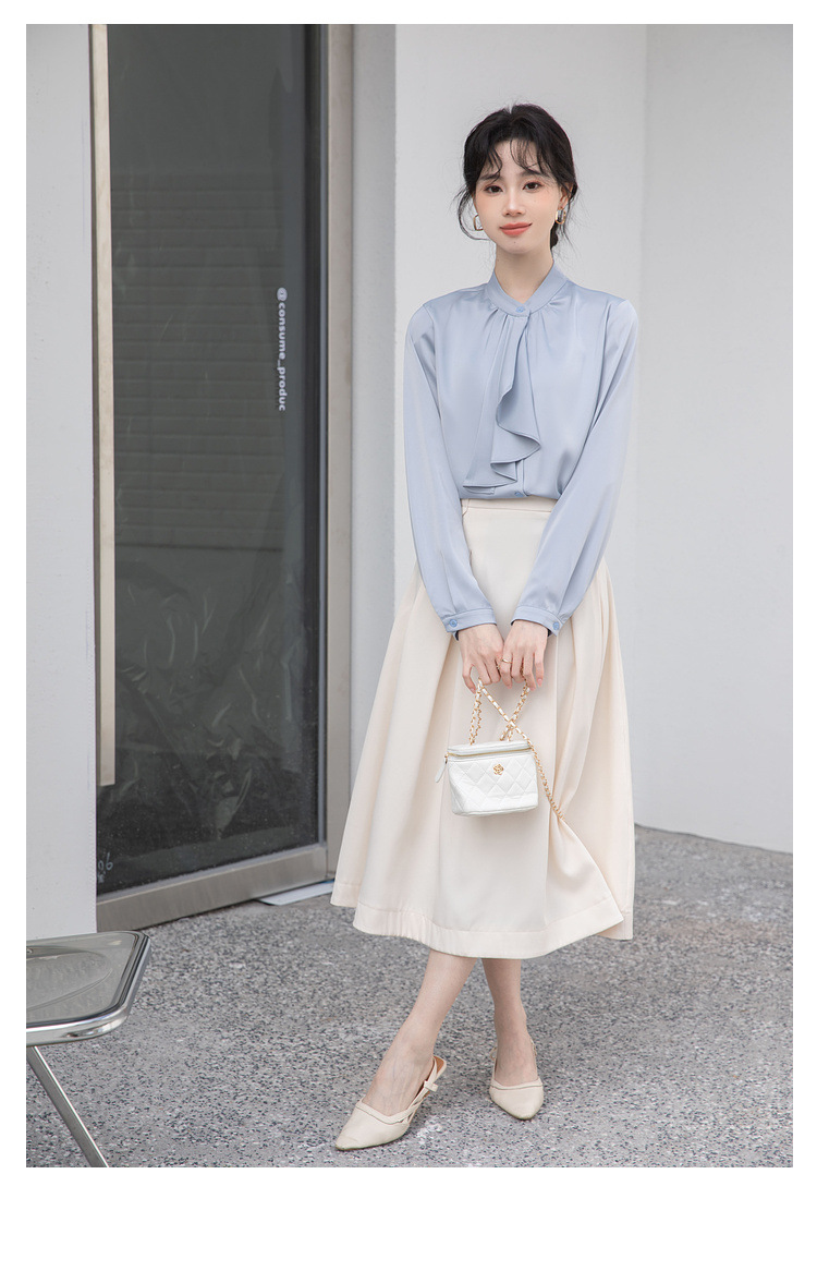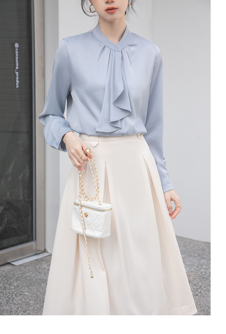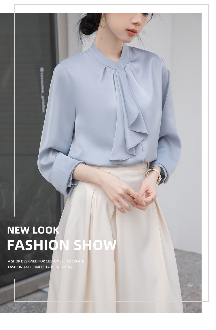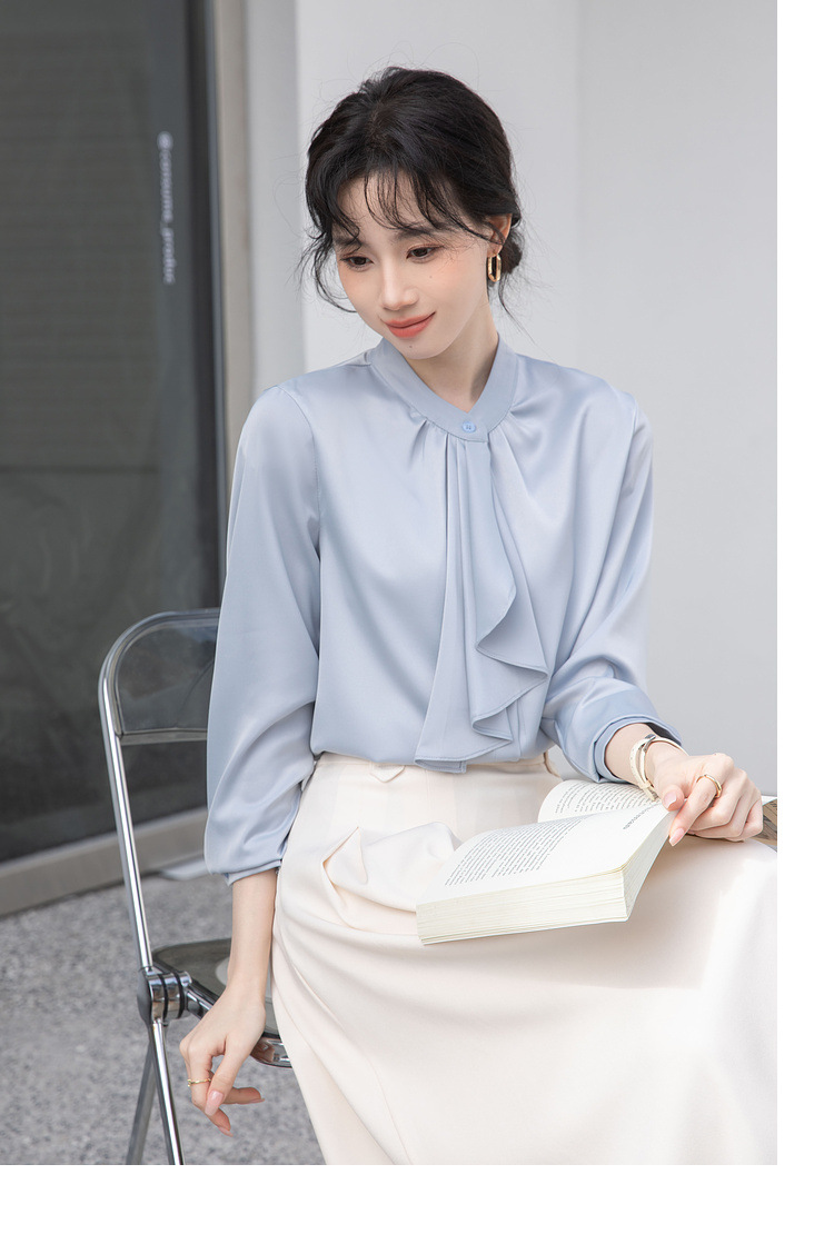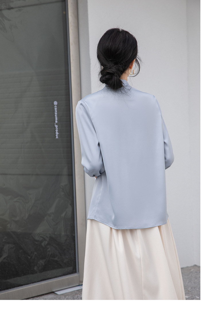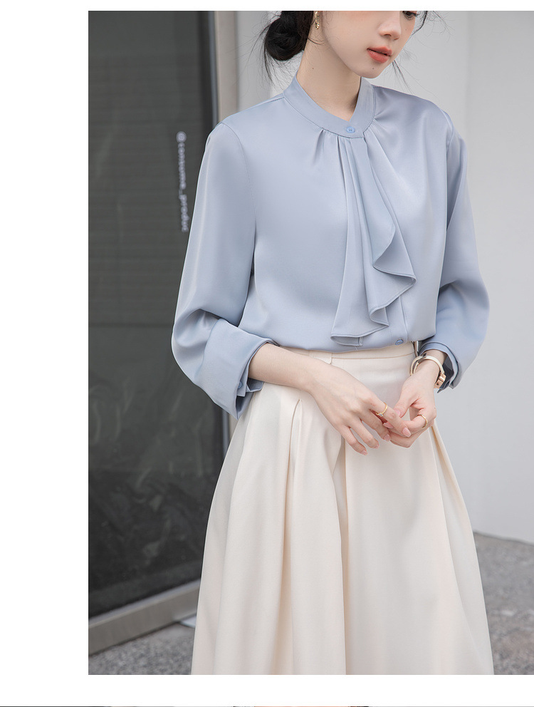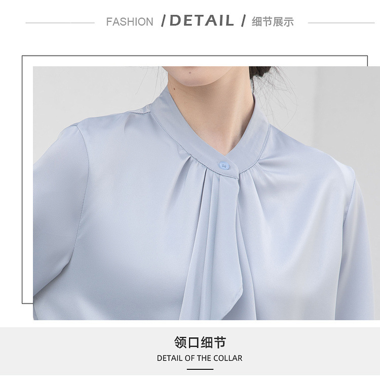 フレンチエレガントデザインの蝶ネクタイ付き2025春秋白長袖シャツ、女性らしい通勤用オフィスシャツ