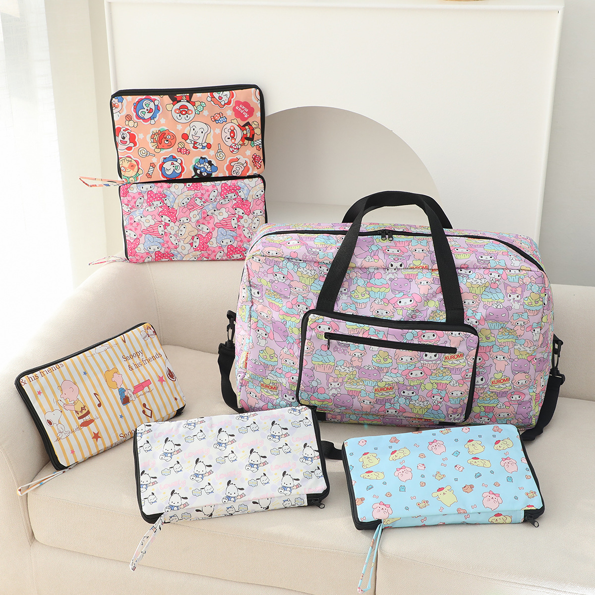 虹熊クロミ大容量手提げ旅行袋は旅行箱のポールに挿してもいいです。