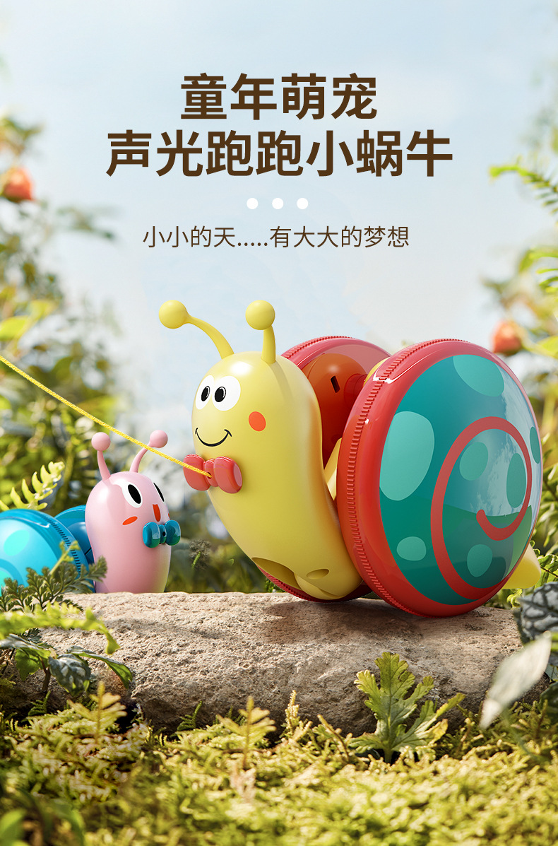 カタツムリのひものおもちゃの電動の爬行動物の繊維のひもは光ります1-2歳の3子供の益智の男の子の女の子の赤ちゃんのネットの赤いです。