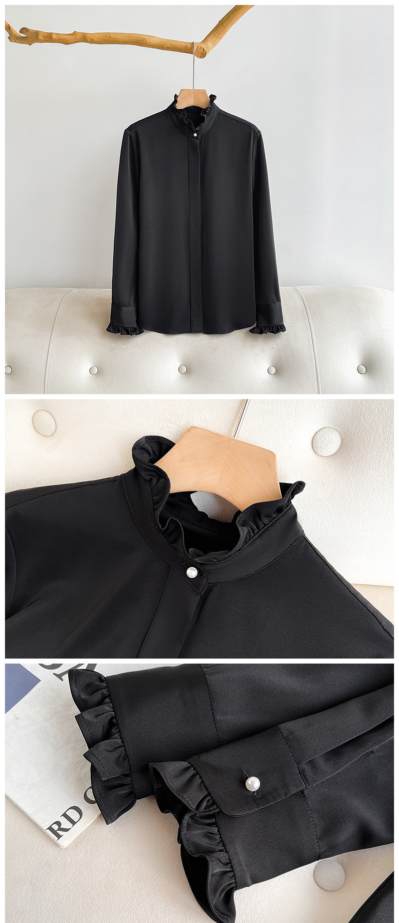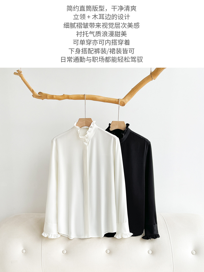 秋の新スタイルライトラグジュアリーデザインニッチサテンフレンチスイート耳立ち襟白シャツレディース人気トップス