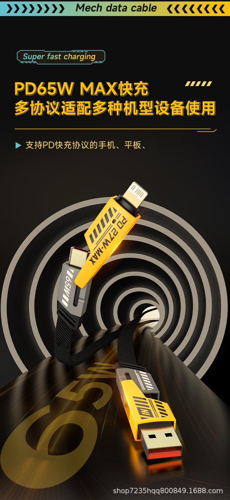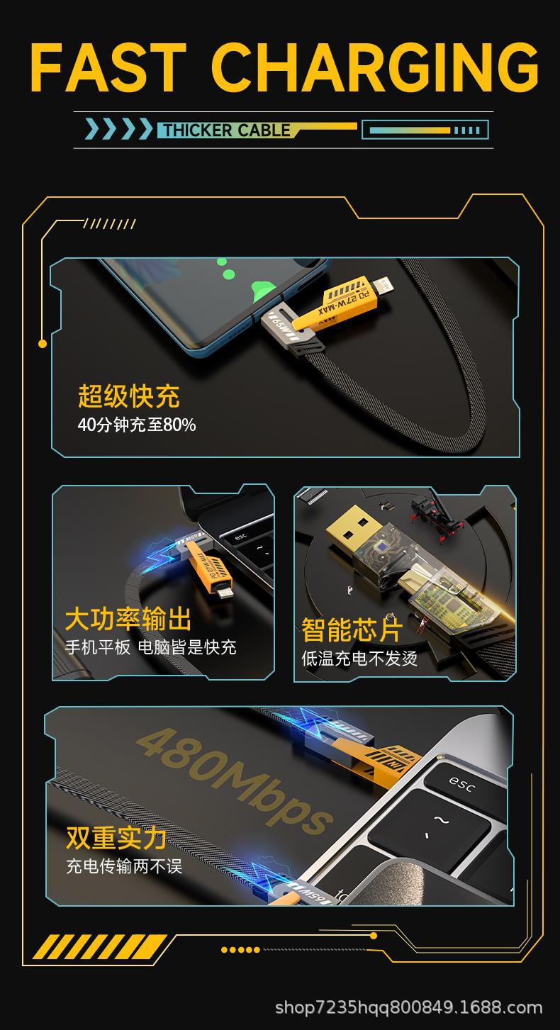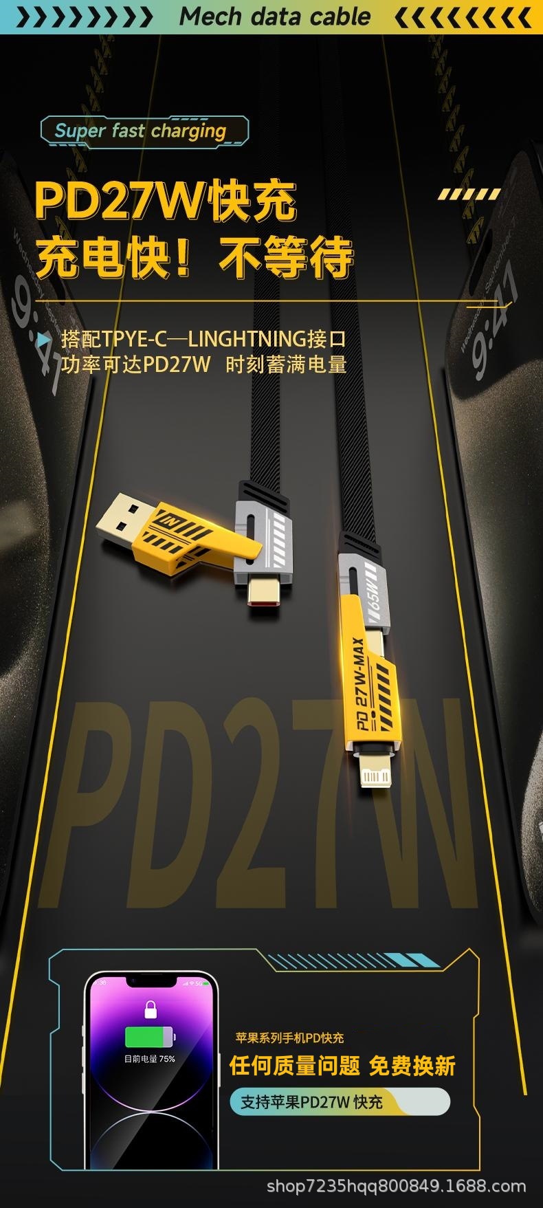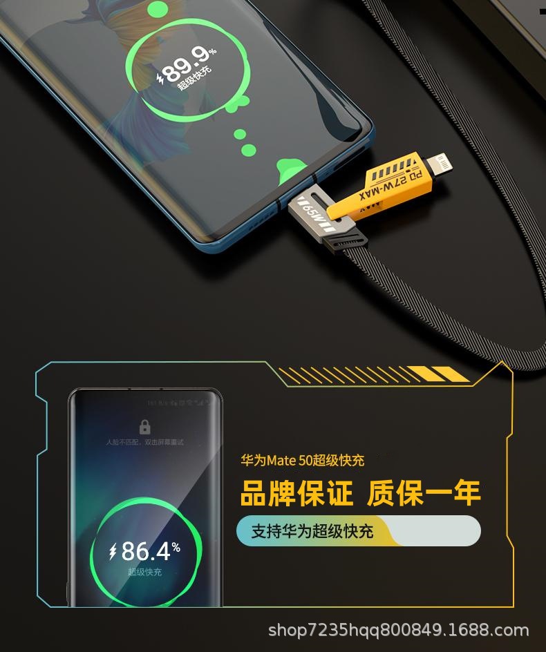 四合一亜鉛合金機甲速充データ線pd27w多頭通用type-c65W多機能セット