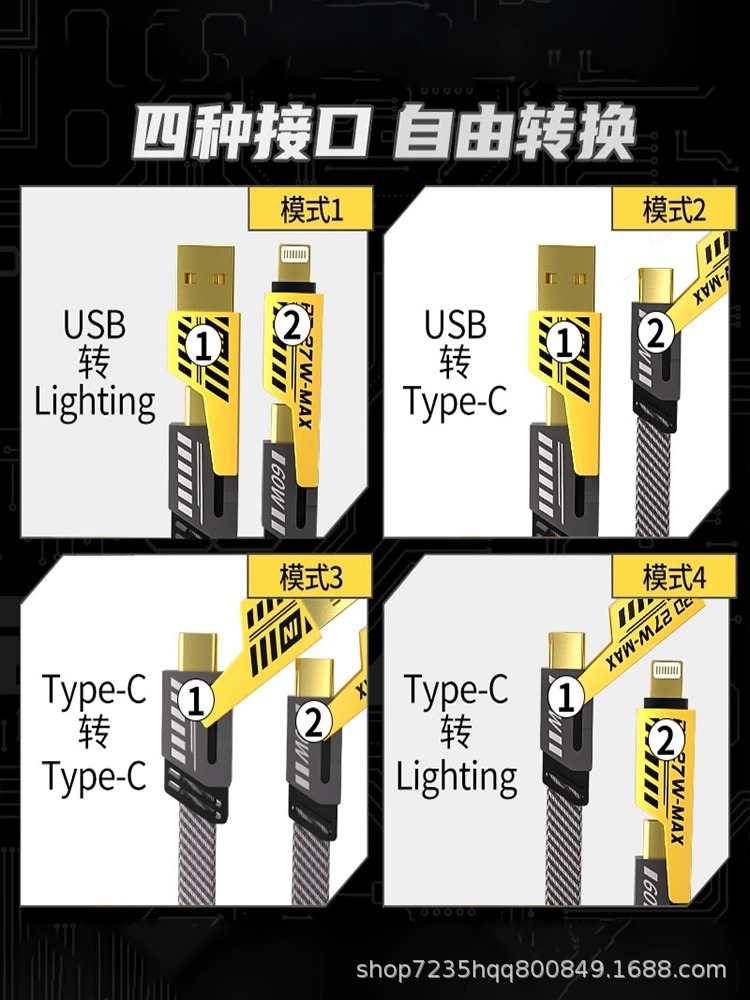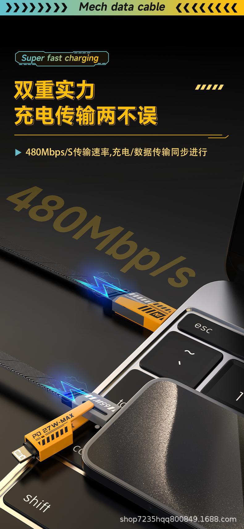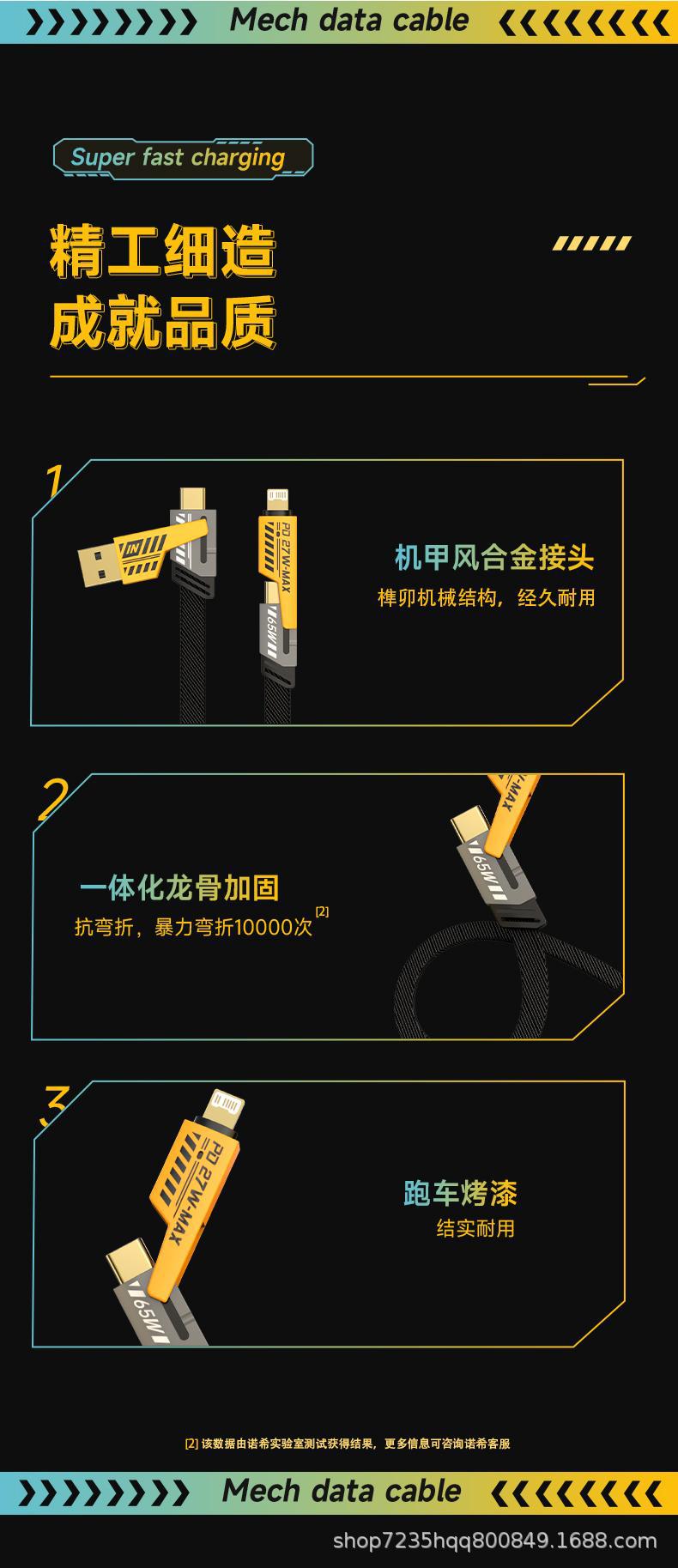 四合一亜鉛合金機甲速充データ線pd27w多頭通用type-c65W多機能セット