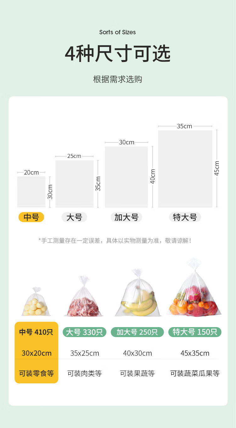 美しい雅鮮度保持袋食品級家庭用高温増厚点断式キッチン冷蔵庫用pe食品袋卸売り