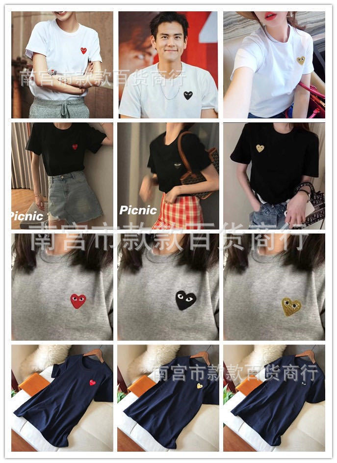 右肩半袖Tシャツ 男女兼用 丸首 夏 刺繍 ラブ トレンド ブランド 純綿 五分袖