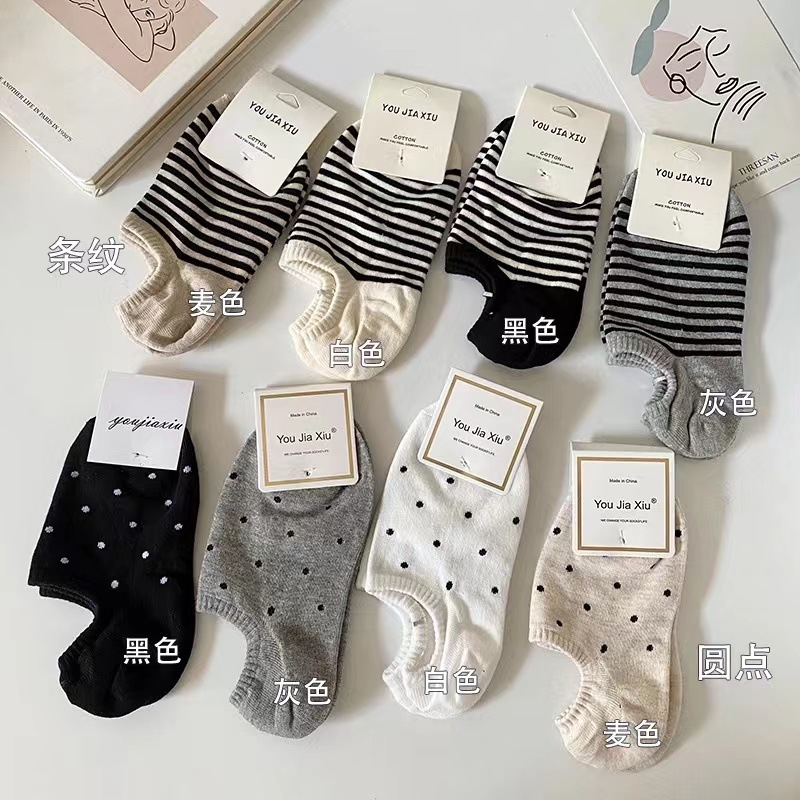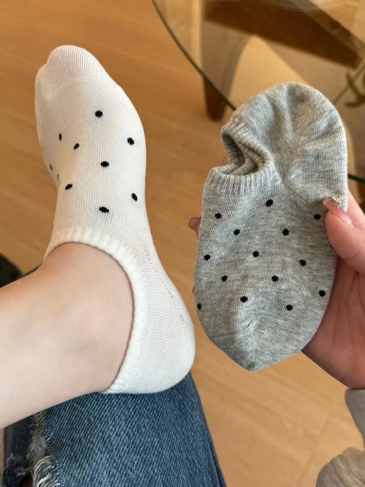 韓国東大門水玉ソックス浅口ボートソックス日本製無地水玉落ちない夏用薄手インビジブルソックス