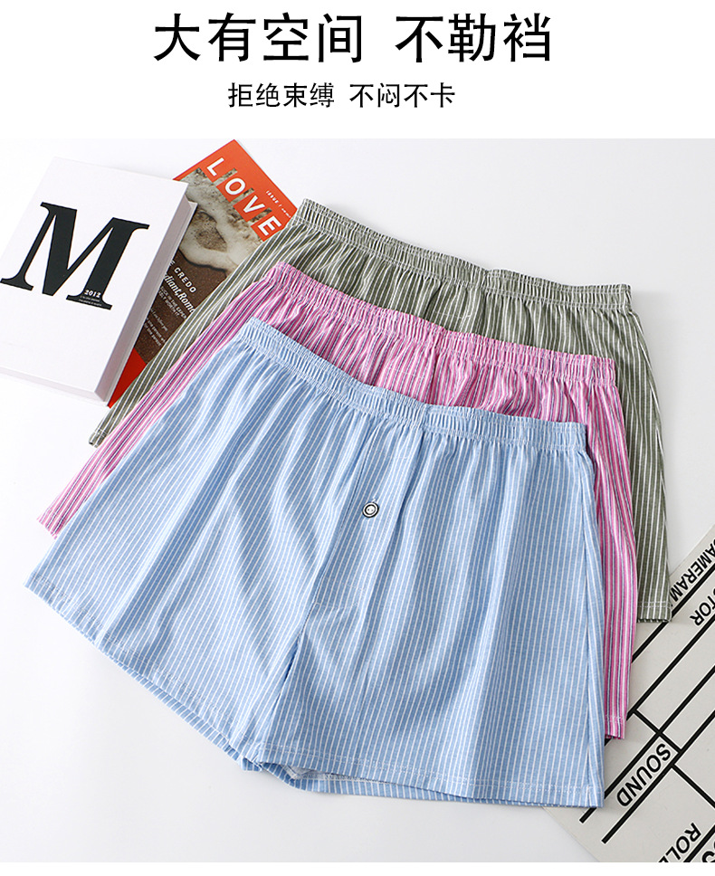 メンズパンツ男性純綿通気性ストライプピンク四角ズボン頭青年男性男性ゆったり大きいサイズ運動平角ズボン
