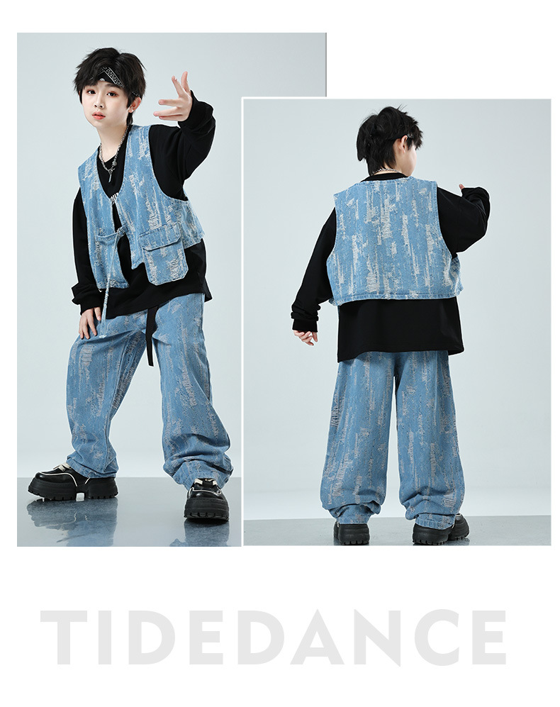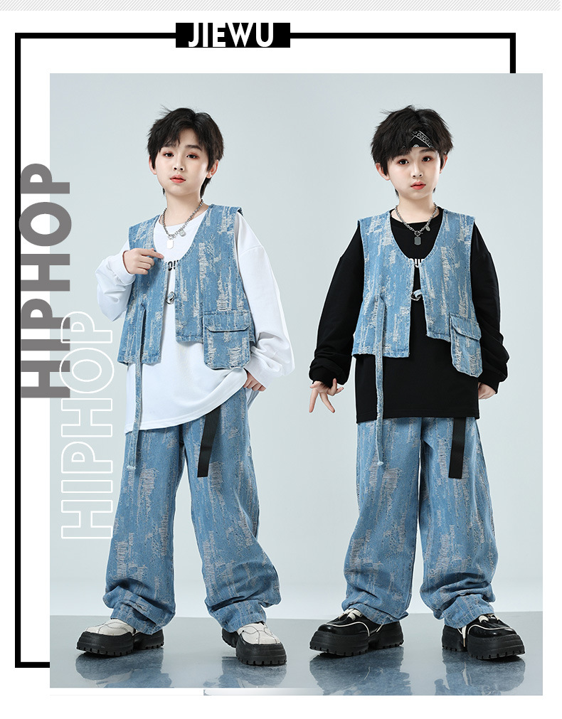 子供の街のダンスの公演服の男女の子供のカウボーイのスーツのジャズのダンスのhiphopの舞台のショーのファッションの服の長袖