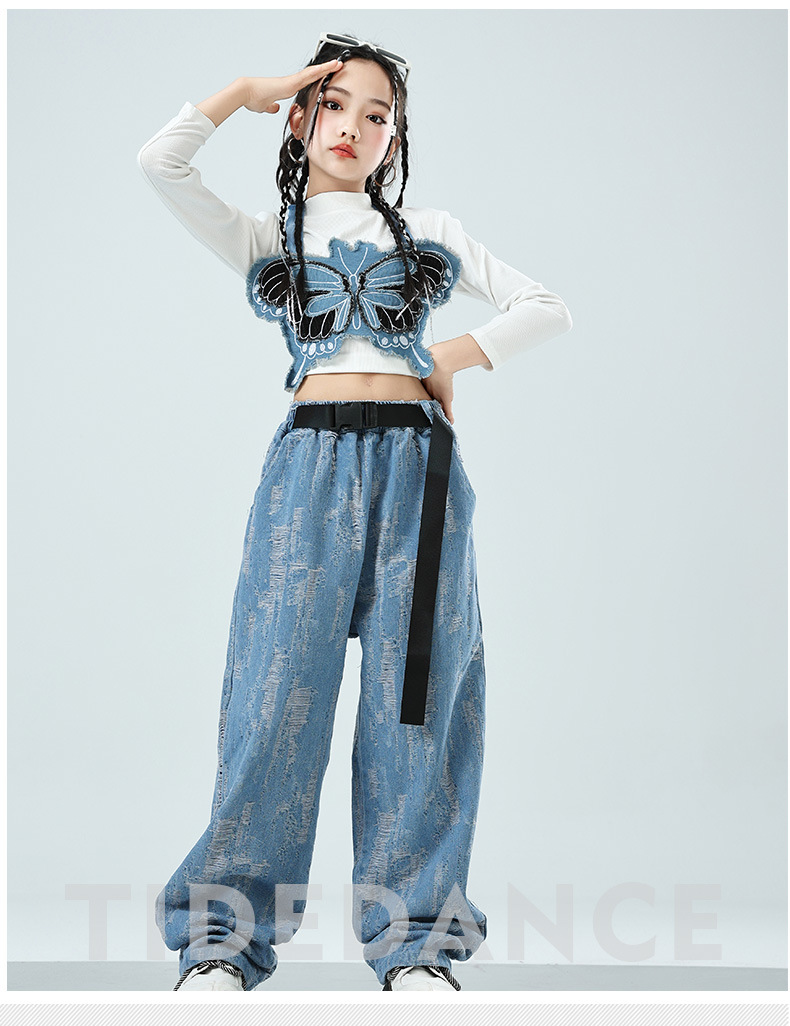 デニムの蝶 + 古いデニムのズボンを磨きます。