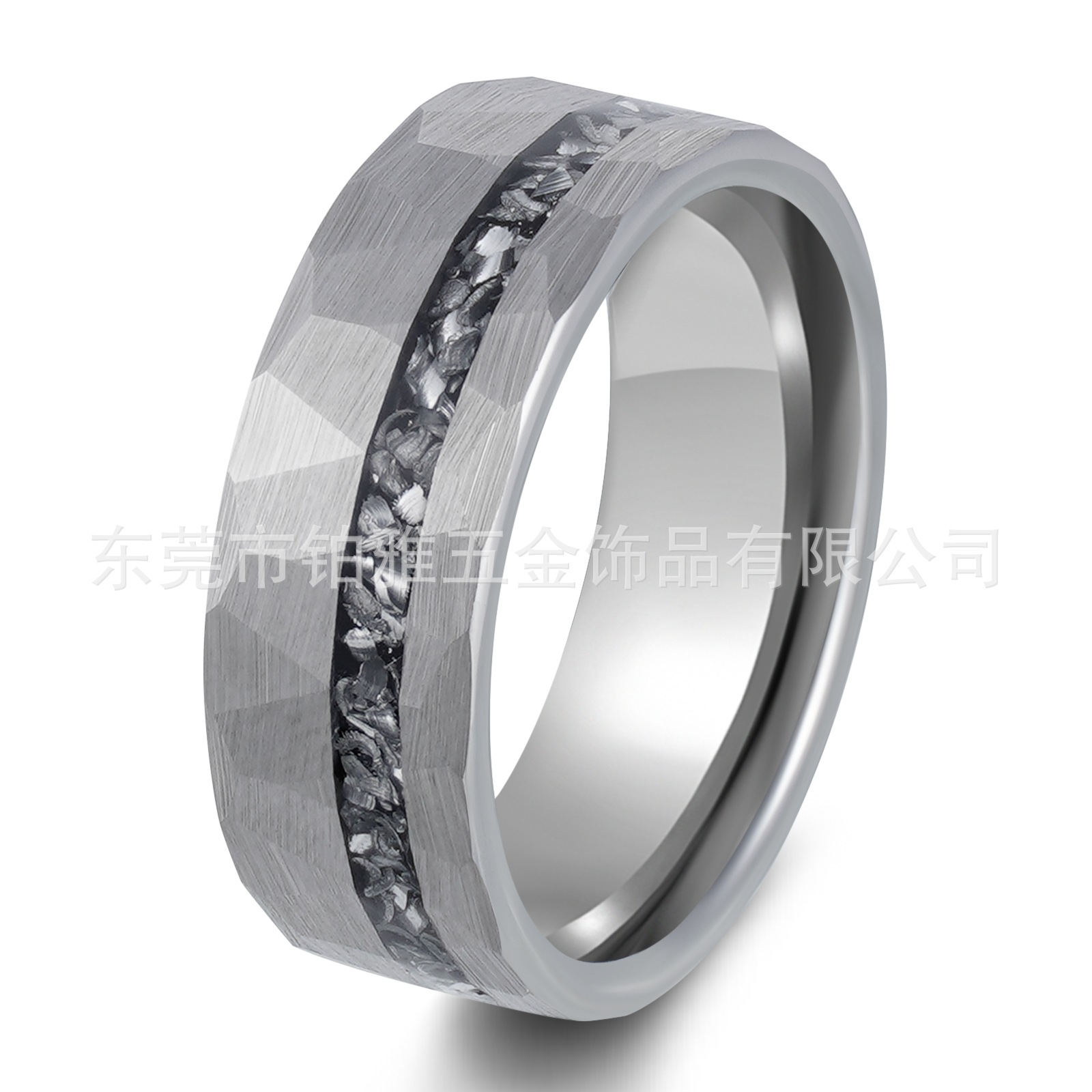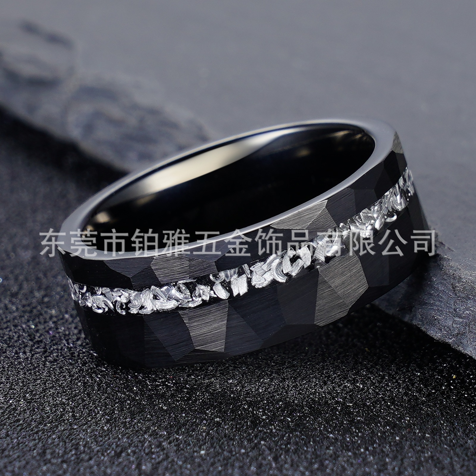 クロスボーダーホット販売電気メッキブラック 8 ミリメートルリングタングステン鋼ハンマーパターン象嵌石破片メンズリングニッチハイエンドセンス