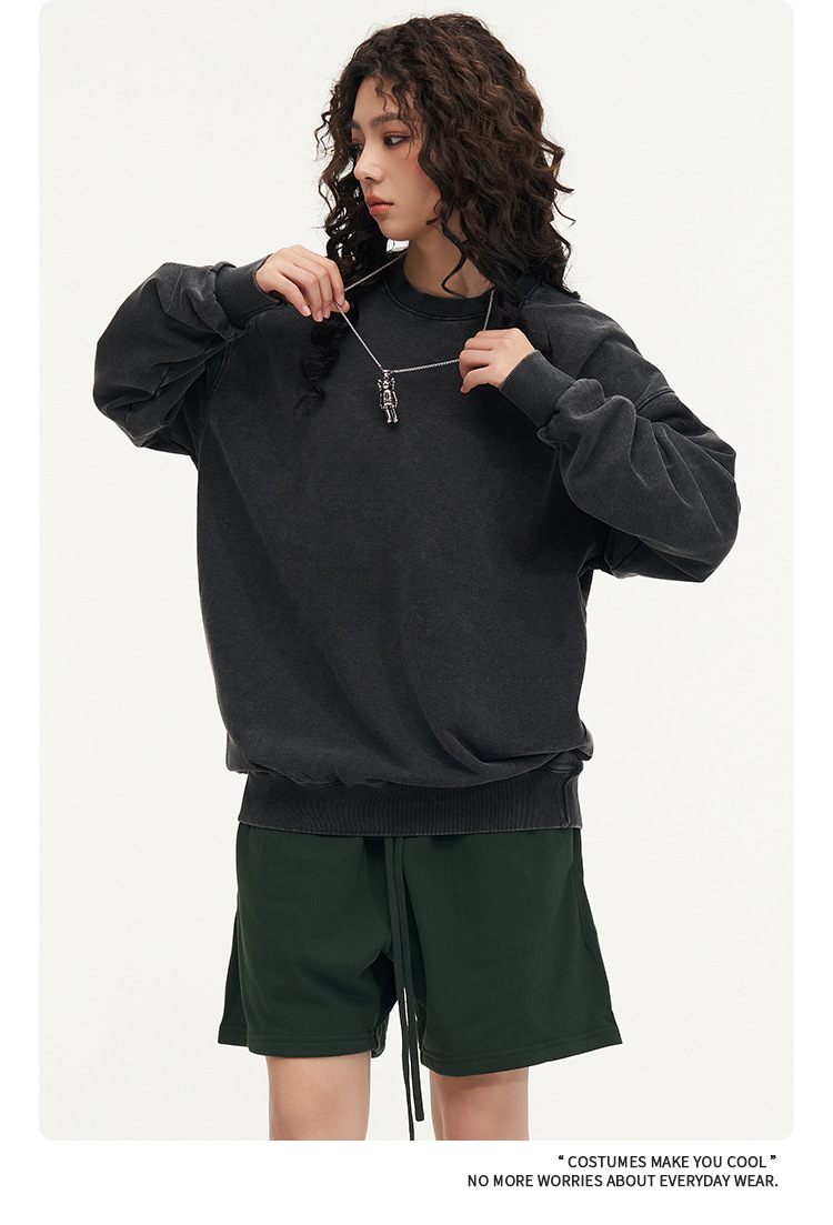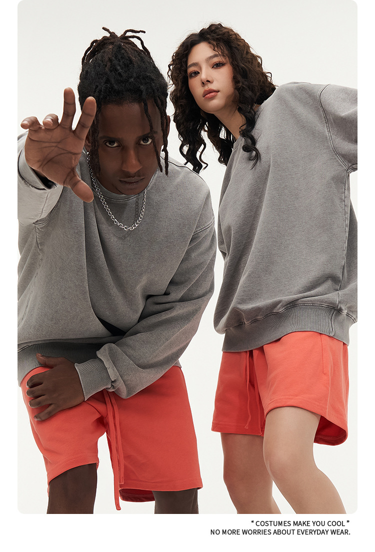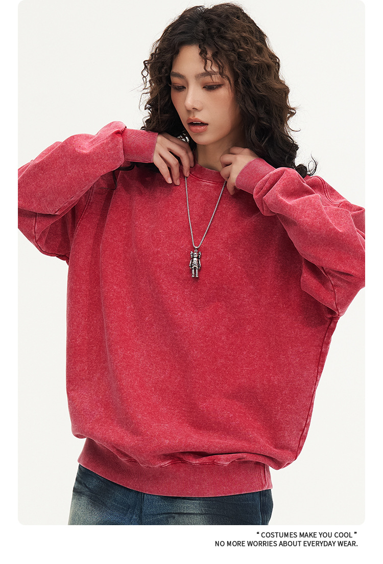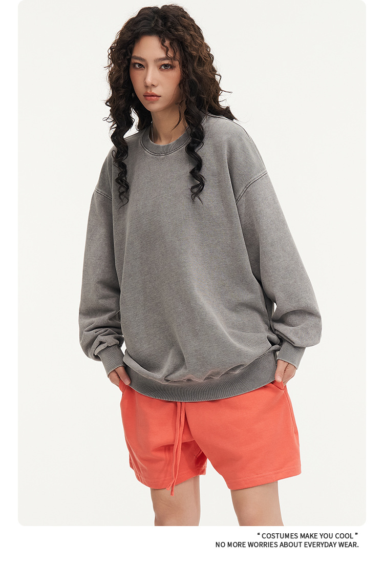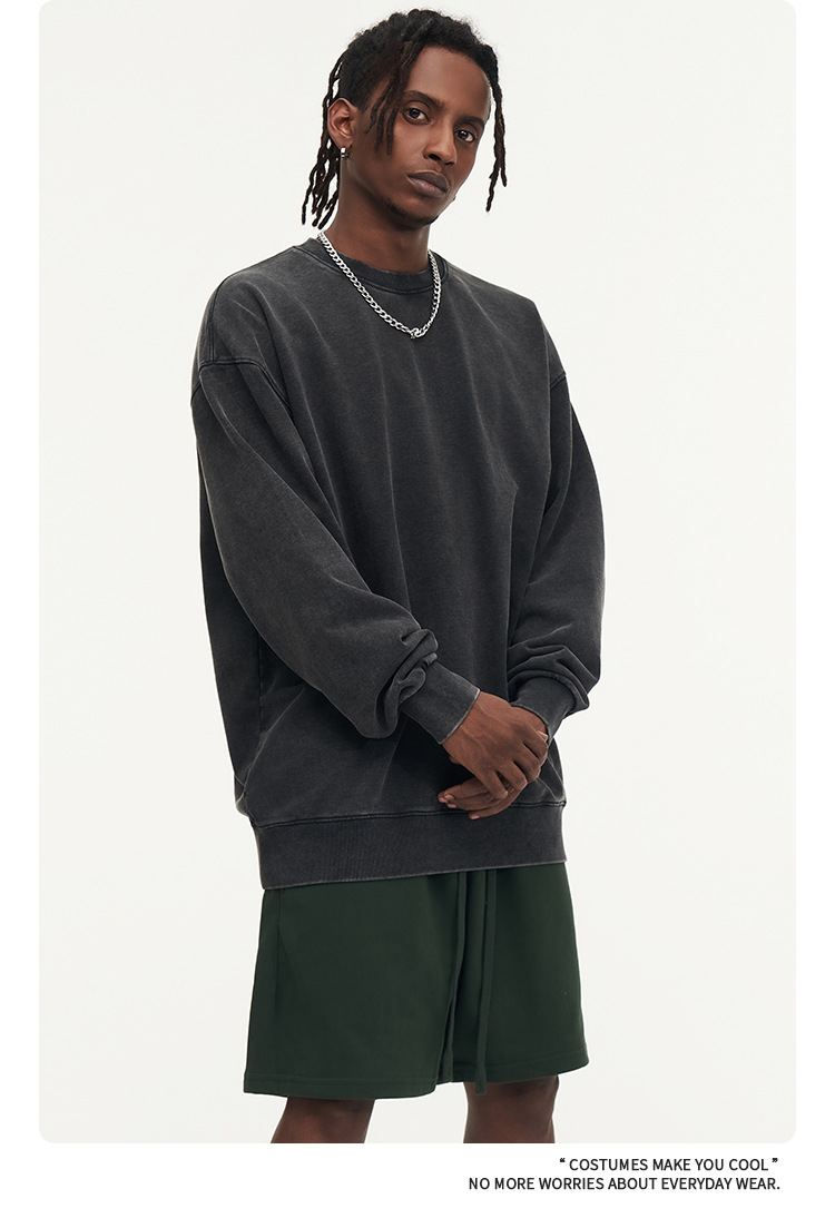 秋冬450gワックス染めウォッシュ加工ラウンドネックスウェットシャツ メンズ 純綿 ヴィンテージ風 ゆったり カップルスタイル トレンドブランド カスタム 長袖
