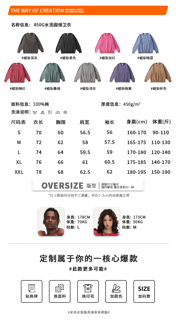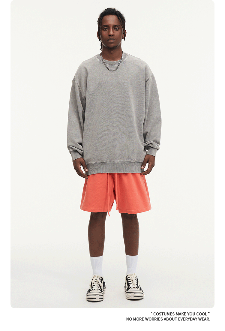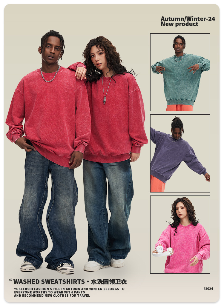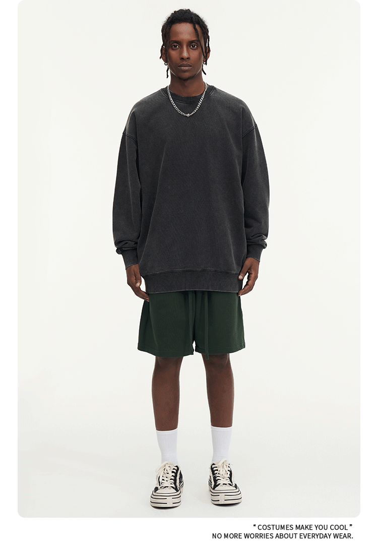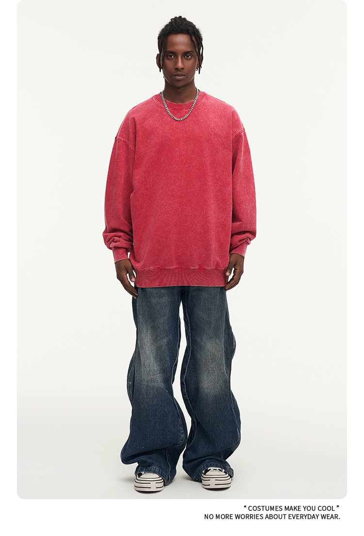 秋冬450gワックス染めウォッシュ加工ラウンドネックスウェットシャツ メンズ 純綿 ヴィンテージ風 ゆったり カップルスタイル トレンドブランド カスタム 長袖