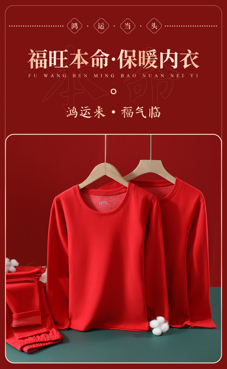 本命年男性保温下着秋冬カップルカーディガン女性カシミヤシルク赤い秋衣秋ズボンセット