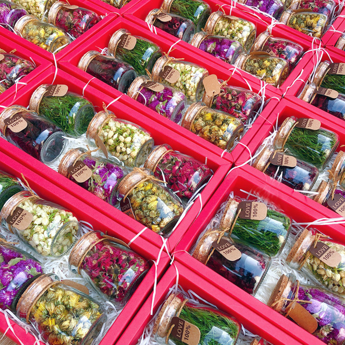 バラ(シングルジャン),胎菊(単缶),ジャスミン(シングルジャー),バラの花(シングルジャー),ラベンダー(シングルジャー),センナ(シングル缶),ローズマリー(シングル缶),レモングラス(1缶),カモミール(シングル缶),オレンジブロッサム(シングル缶),忘れな草(シングル缶),べっ甲の花(単品),アップルブロッサム(シングル缶),ブルーバタフライ(単缶),ネムノキ(シングル缶),ローゼル(シングル缶),ユリ(シングルジャー),乾燥桃の花(シングル缶),カーネーション(単品缶),康仙花(シングルジャー),ポトスの花(単品),千日紅(シングル缶),紅喬梅(シングル缶),ティーツリーフラワー(シングル缶),マリーゴールド(シングル缶),青梅(単缶),ステビアの葉(シングル缶),白梅(単缶),クローブティー(シングル缶),ナデシコ茶(単缶),桑の葉茶(単缶),白レンズ豆(シングル缶),あずき(単缶),大麦粒(1缶),玄米茶(シングル缶),麦茶(シングル缶),生姜ライスティー(シングル缶),韃靼そば茶(単缶),チコリの根(シングルジャー),ごぼう(1缶),葛茶(シングル缶),黄クチナシ(単缶),エイジレスベリー(シングル缶),黒クコ(単缶),リュウガン肉(単缶),赤デーツリング(1缶),レッドクコ(シングル缶),乾燥生姜(1缶),陳皮シルク(単缶),黒桑(シングル缶),オレンジピール(シングル缶),クミン(シングル缶),ブラックペッパー(1缶),ホワイトペッパー(1缶),雄クローブ(シングル缶),青椒(シングル缶),リンドウ(シングル缶),ピーチガム(単缶),雪ツバメ(単缶),サポニンライス(1缶),たんぽぽ茶(単缶),崑崙雪菊(シングル缶),タンポポの根(単缶),プノンペンローズ(シングルジャグ),ビターローズ(シングル缶),マテ茶(シングル缶),ルイボスティー(シングル缶),軽い笹の葉(単缶),ミントクラッシュ(シングル缶),梅干し(1缶),梅干し(単品缶),ドライブルーベリー(1缶),ウチワサボテン(単缶),レンゲ(単品),サルビアミルティオリザ(シングル缶),ポリア(シングル缶),蓮の実(単缶),山芋(1缶),ゴルゴン(シングル缶),四川オフィオポゴン(シングル缶),アップルダイス(シングル缶),いちごさいの目(1缶),ポロディン(シングル缶),白桃角切り(単缶),シドニー角切り(シングル缶),レーズン(1缶),カシス(シングル缶),揚げ穀芽(1缶),揚げ麦芽(1缶),焦がしたサンザシ(シングル缶),霊芝角切り(シングル缶),湿気取り茶(1缶),チアシード(シングル缶),アーモンド(1缶),ピーチカーネル(シングル缶),レモングラス(シングル缶),蓮の実ハート(単品),スノーキャンディ(1缶),白氷砂糖(単缶),黄氷砂糖(単缶),黒糖角砂糖(単缶),ミックス(200mlカスタマイズ)