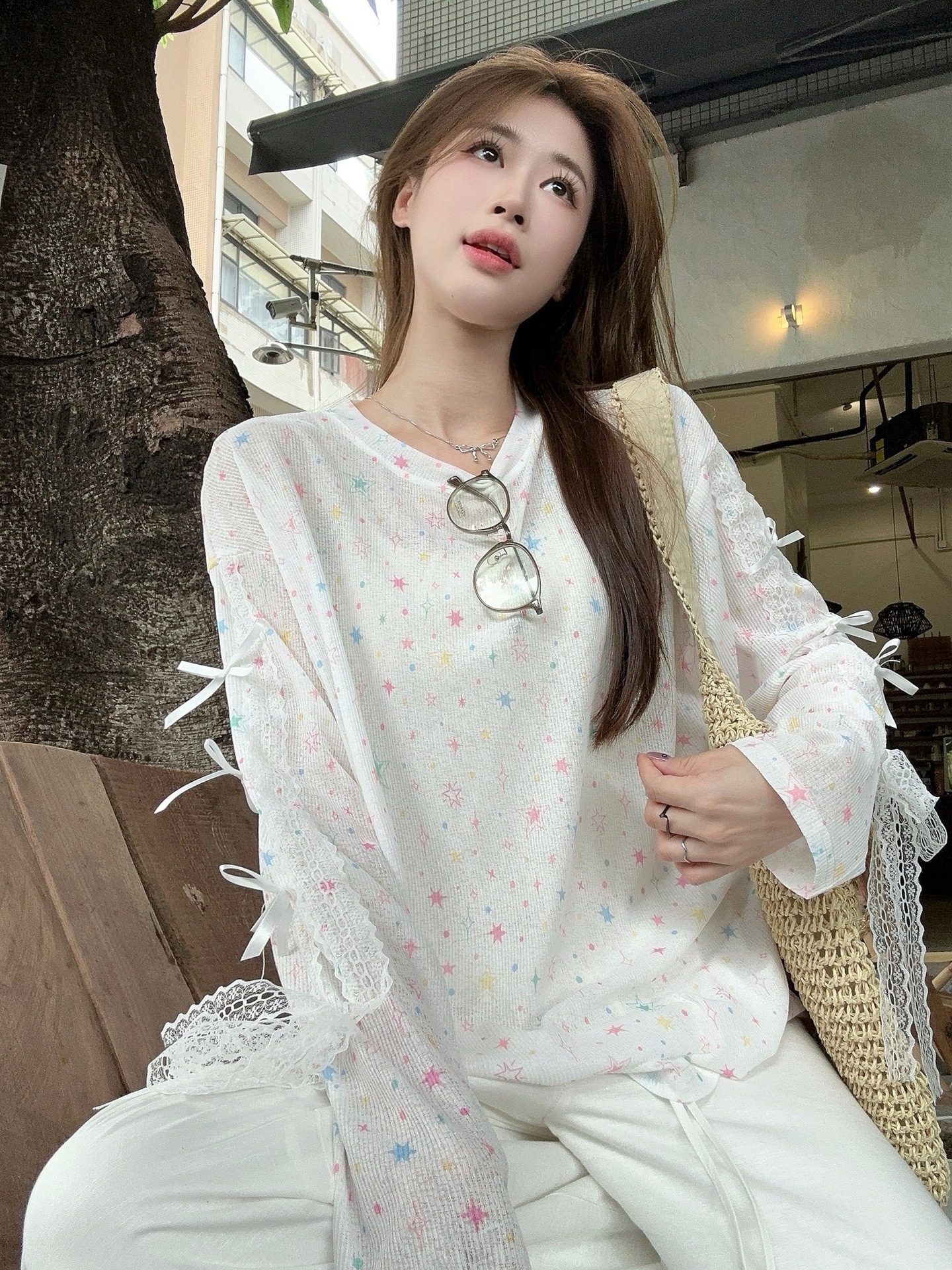 【工場の現物を設置して発見した】ドーパミンプリントのブラウスtシャツの小衆のカジュアルでゆったりした薄い上着