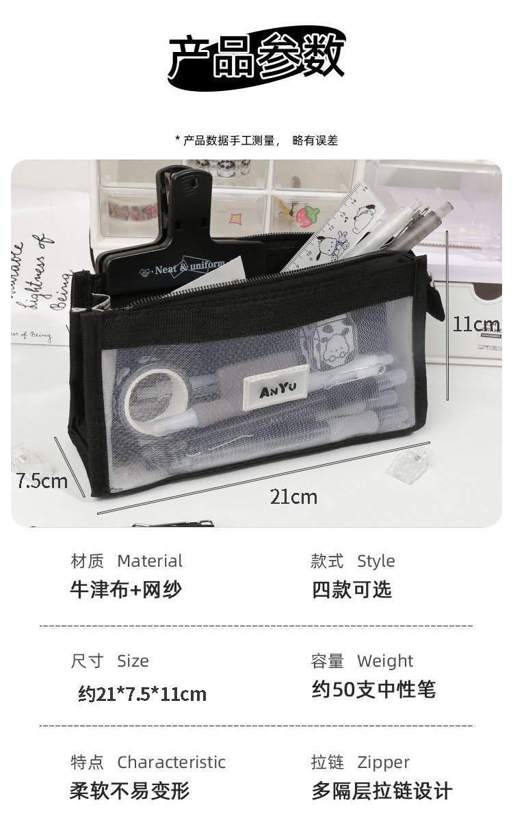 網紗筆袋大容量シンプル文房具袋五階小学生は試験場の鉛筆袋に持ち込むことができます。