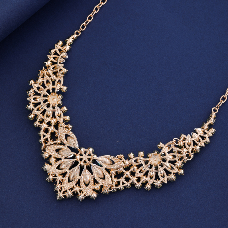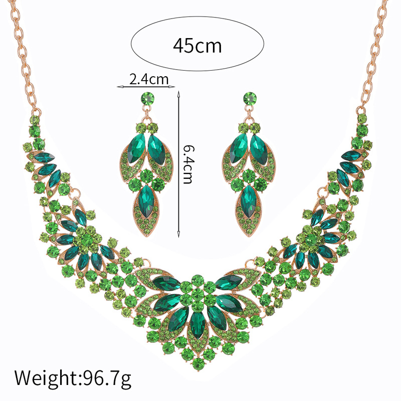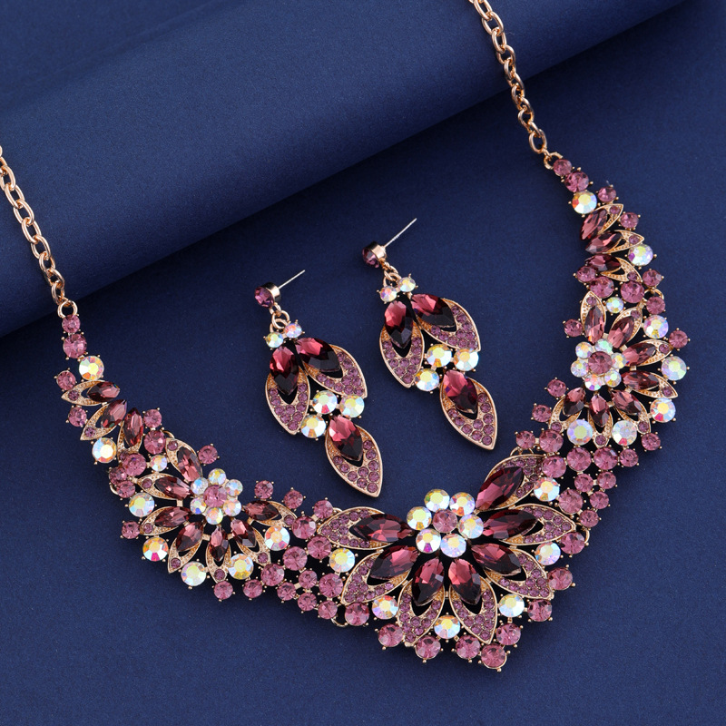跨境欧美礼服饰品首饰套装 项链耳环两件套 彩色花朵新娘服装配饰