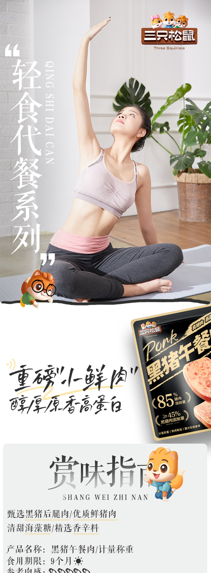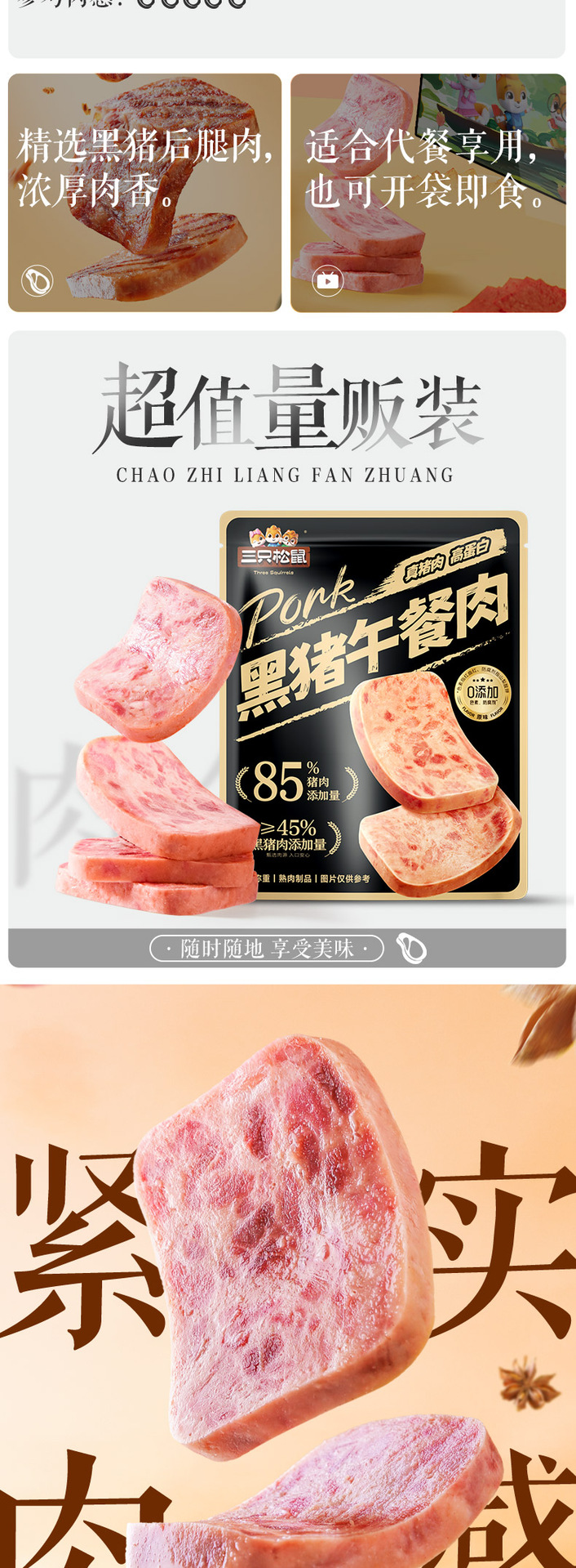 【リス三匹黒豚肉ランチ肉12包】インスタントハム朝食独立包装間食カップラーメン相棒