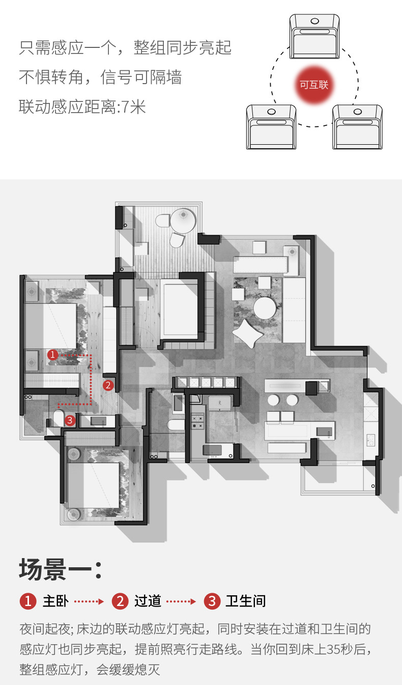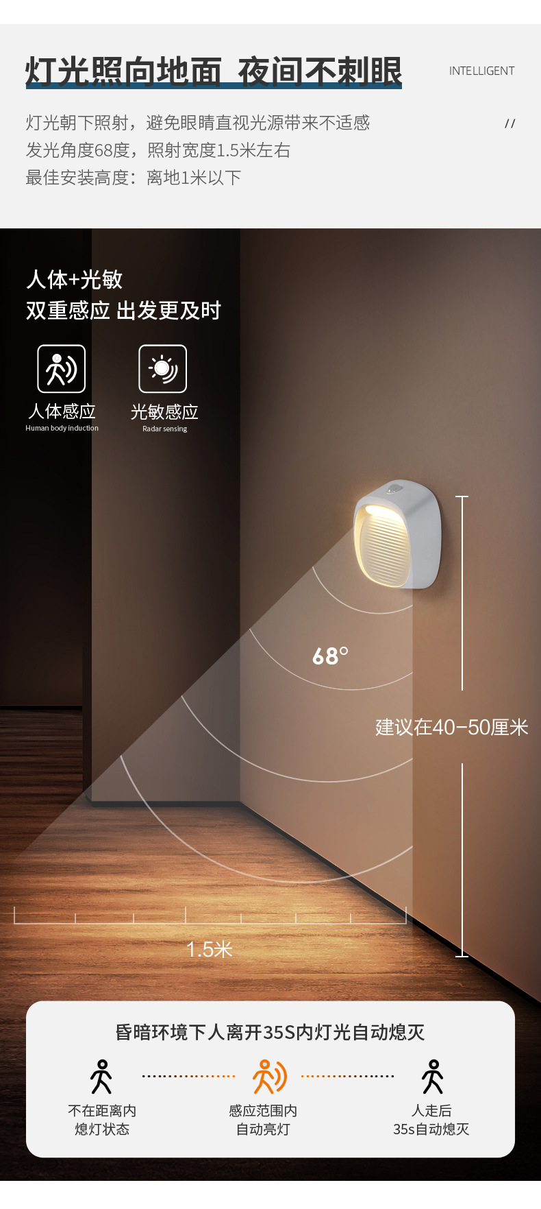 工場直販 EU 認定寝室ベッドサイド廊下階段通路磁気誘導ナイトライトインテリジェントリンケージ