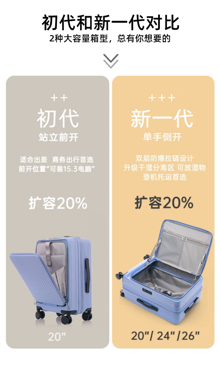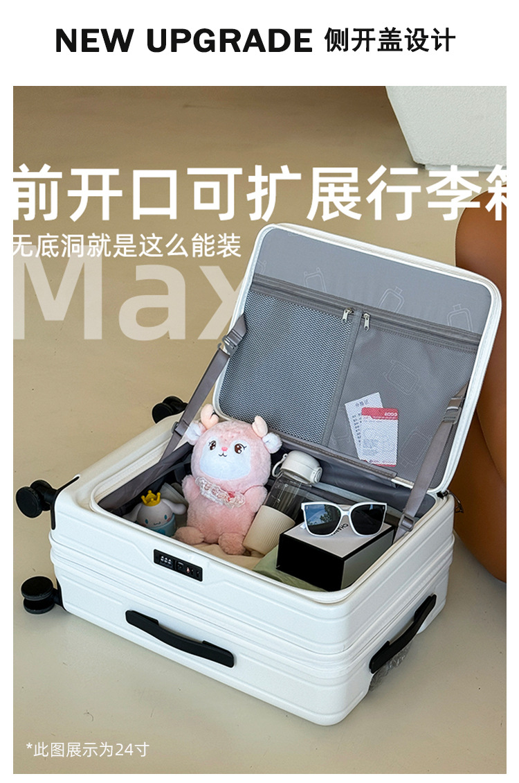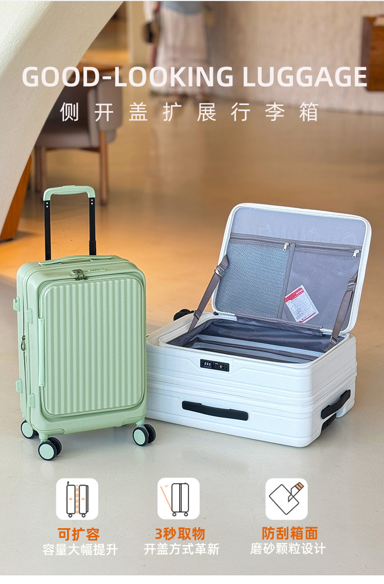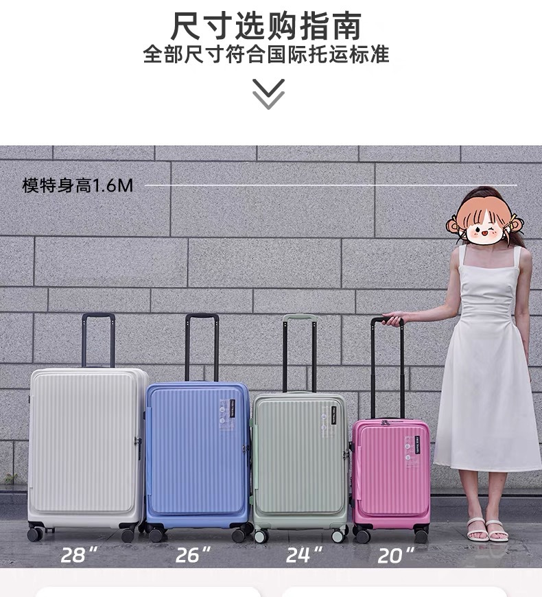 前の蓋を開けたスーツケースは20インチで、ケース側のスーツケースは24インチで、旅行箱の拡張パスワードバッグを開けます。