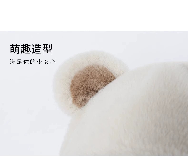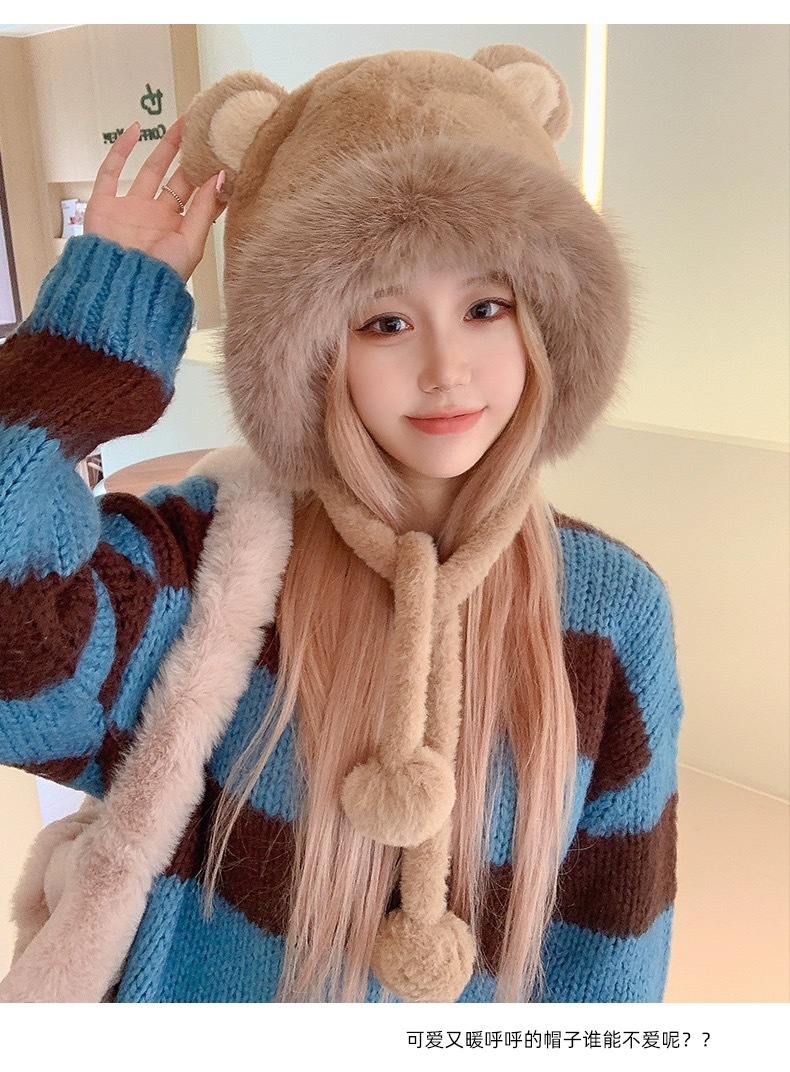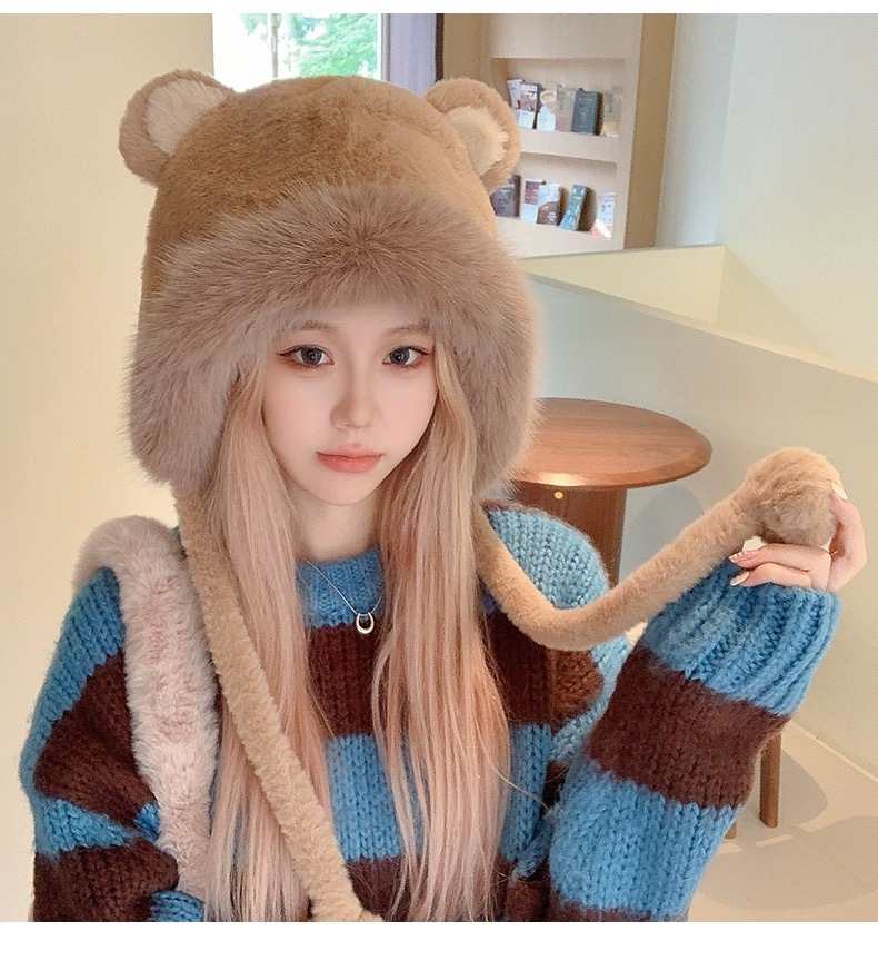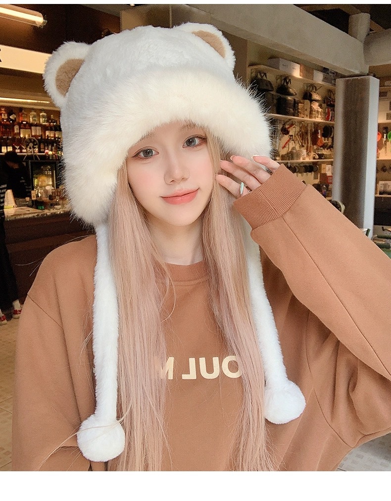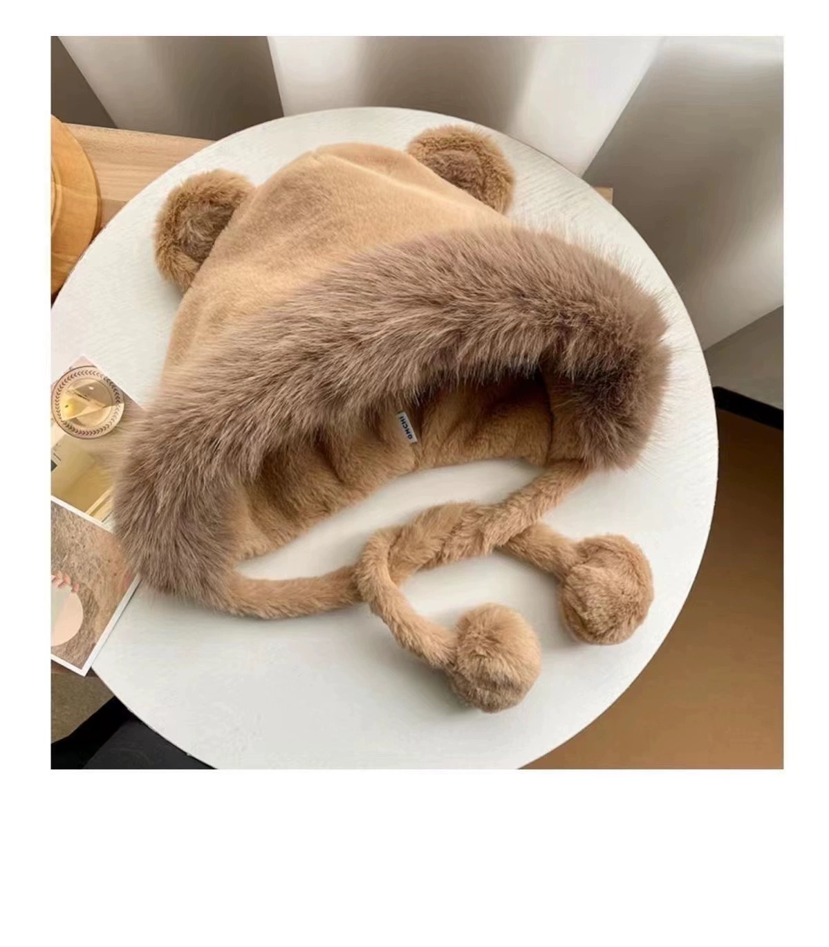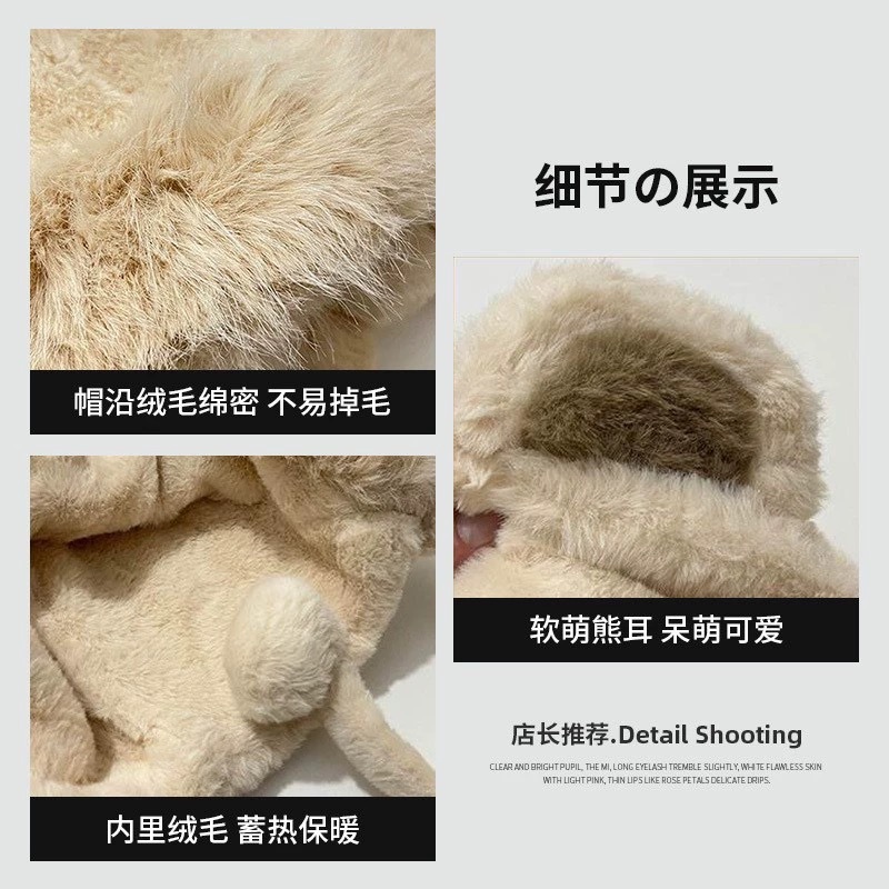 帽子女性の冬のかわいいクマの耳ぬいぐるみ帽子暖かい耳保護帽子プラスベルベット防風ウールボール帽子冬の新スタイル