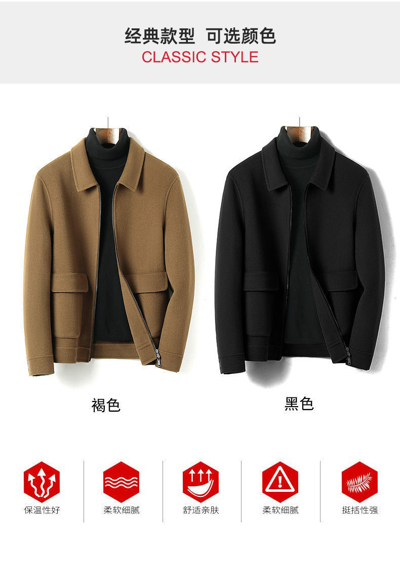 秋冬の新型男性高級コートは両面のラシャコートを厚くして秋にはカジュアルな毛を襟にしますねコート男