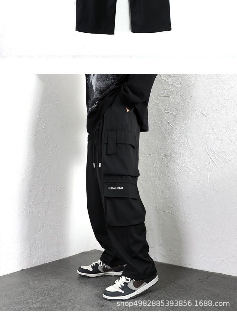 潮男黒アメリカ式工装ズボン高街男子直筒ゆるいズボン男性潮牌広脚レジャーズボン