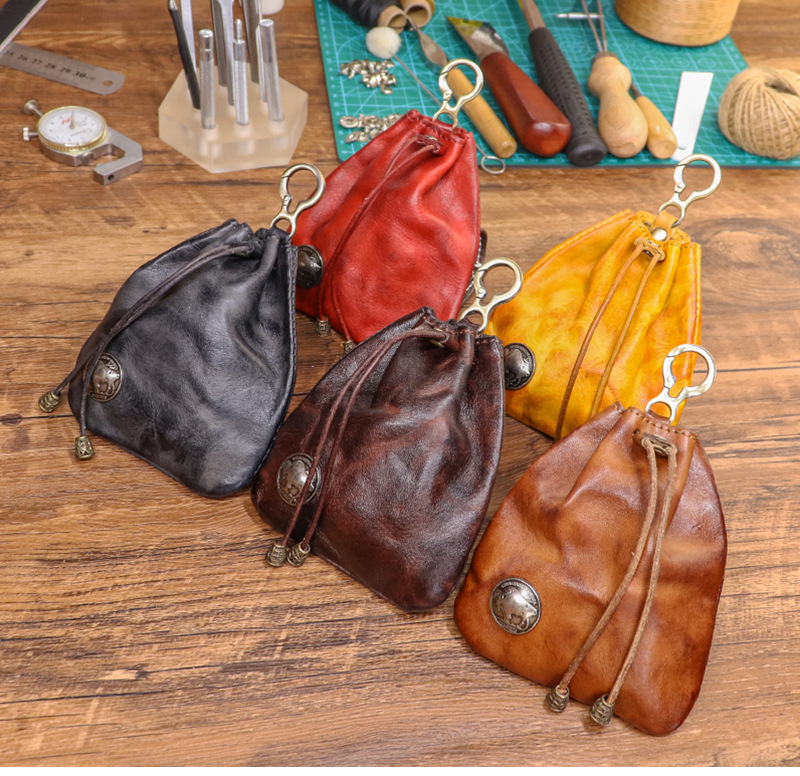 日本のシンプルなトップ層の牛革はなめし革のレトロな女性の香りのカバンのミニのキーホルダーのカードのカバンの小銭入れの収納袋を植えます。