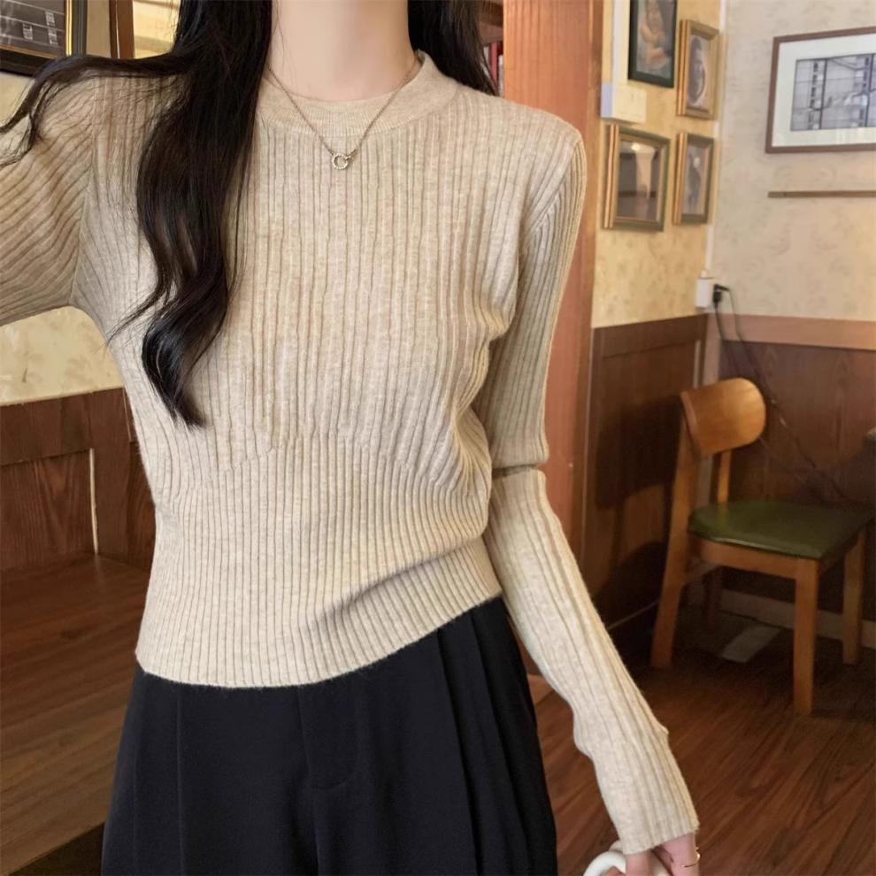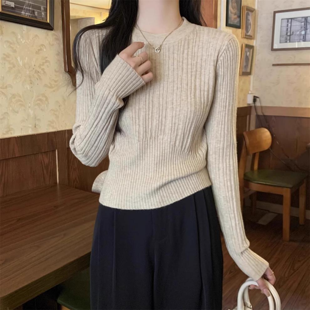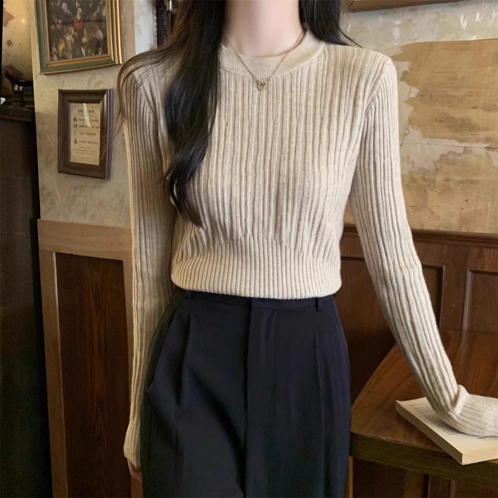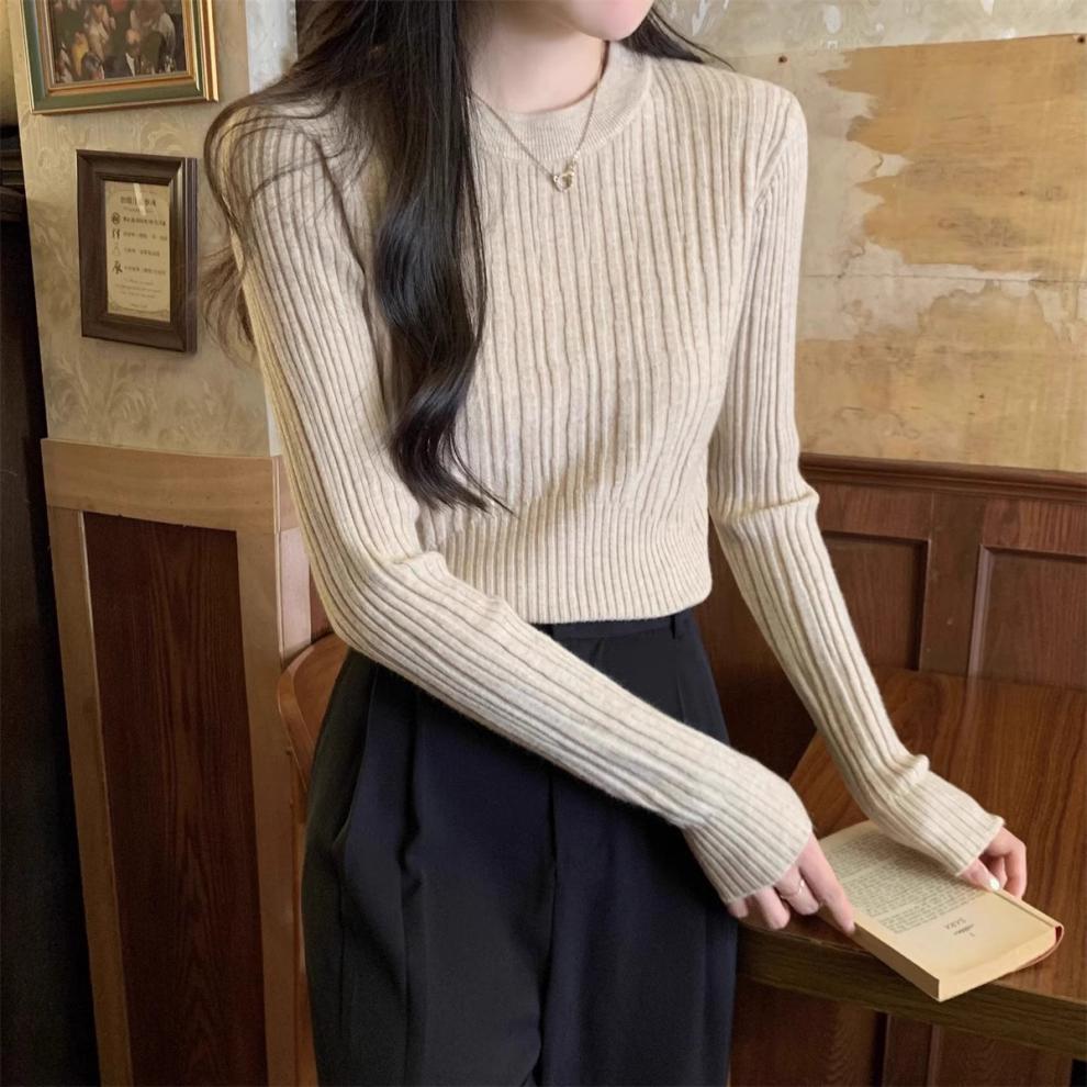 気質丸首セーターニット女性秋冬の新商品の中に身を修めて腰の短いプルオーバーのシャツの上着を収めます。