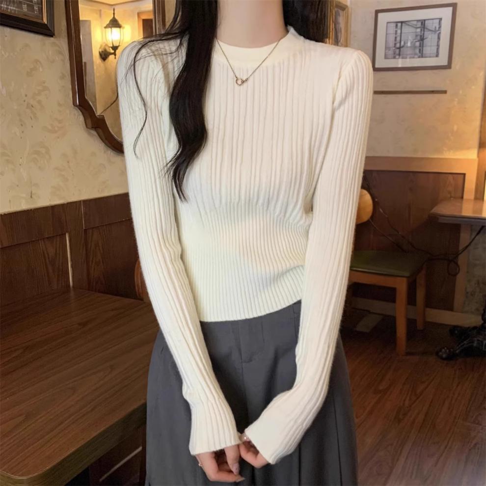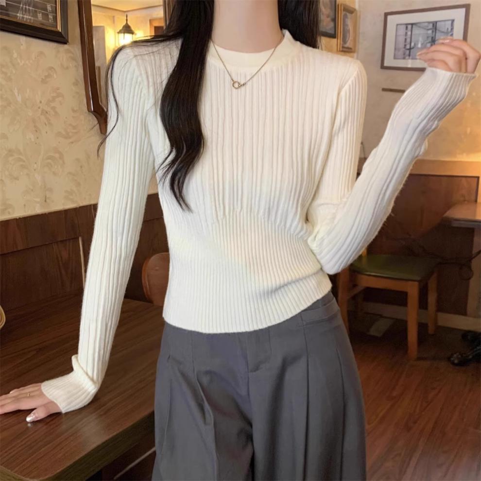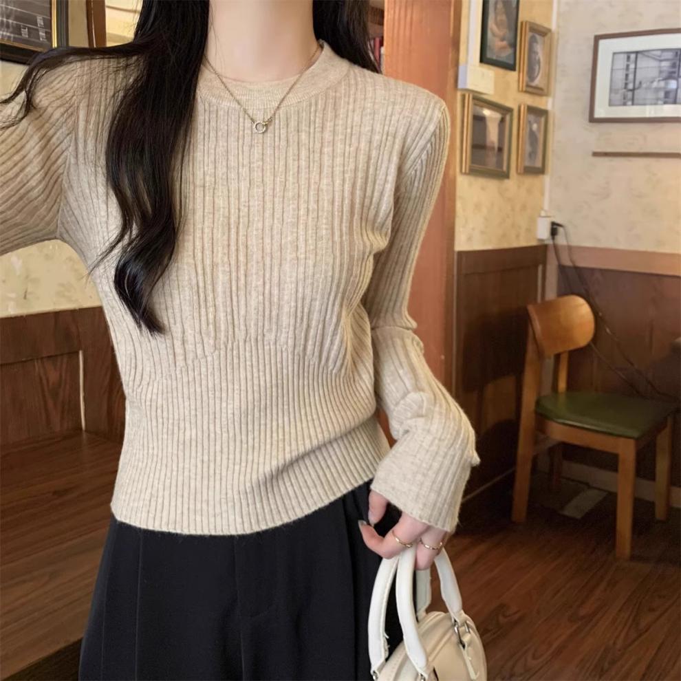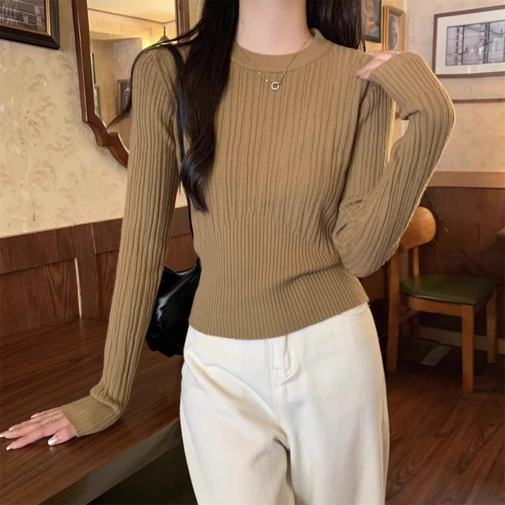 気質丸首セーターニット女性秋冬の新商品の中に身を修めて腰の短いプルオーバーのシャツの上着を収めます。