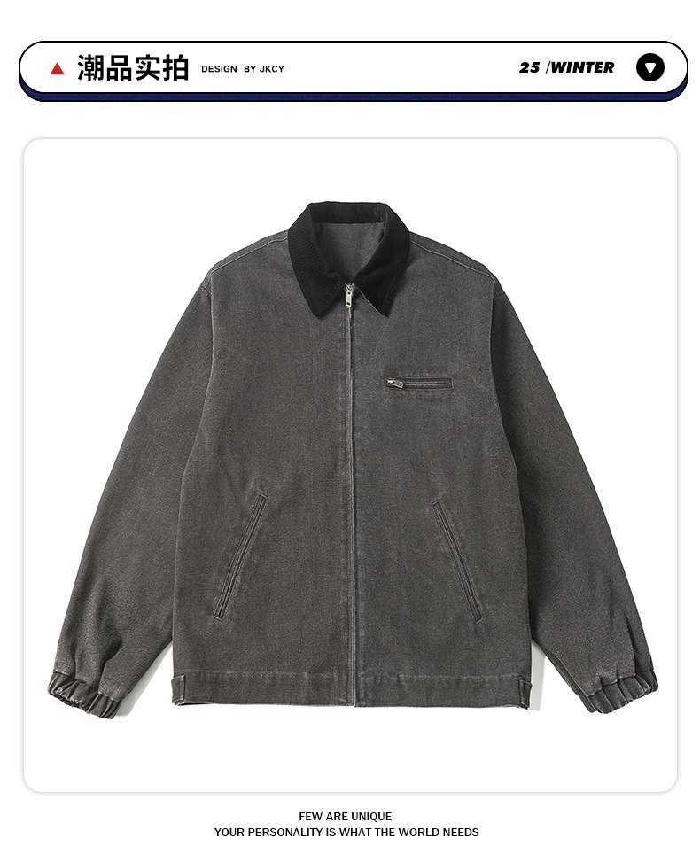 レトロウォッシュワークジャケットメンズ2025春新作トレンドブランドルーズジャケットトップアメリカンボンバージャケット
