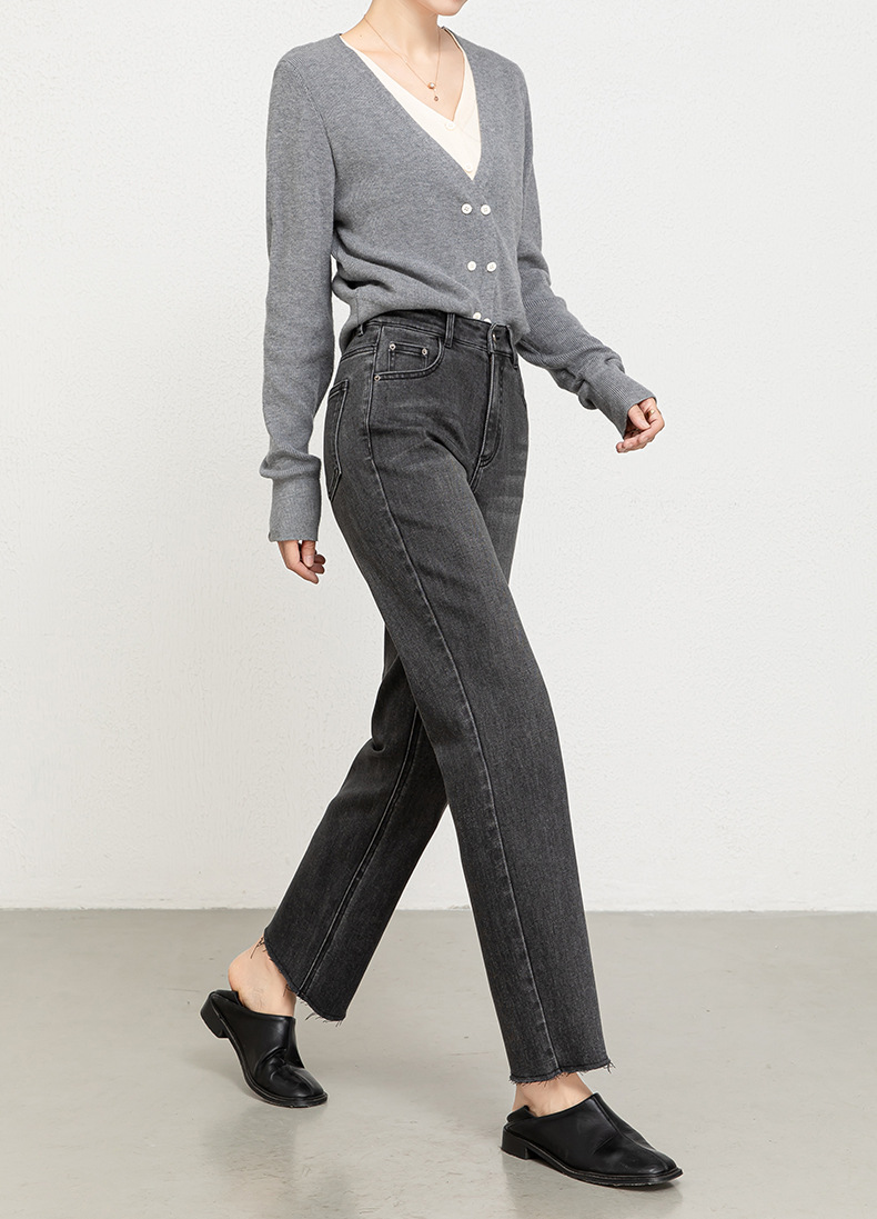 If Four-Way Stretch ジーンズ レディース 9点ストレート 2025秋新作 ハイウエスト スリム エッジ シガレットパンツ 8136