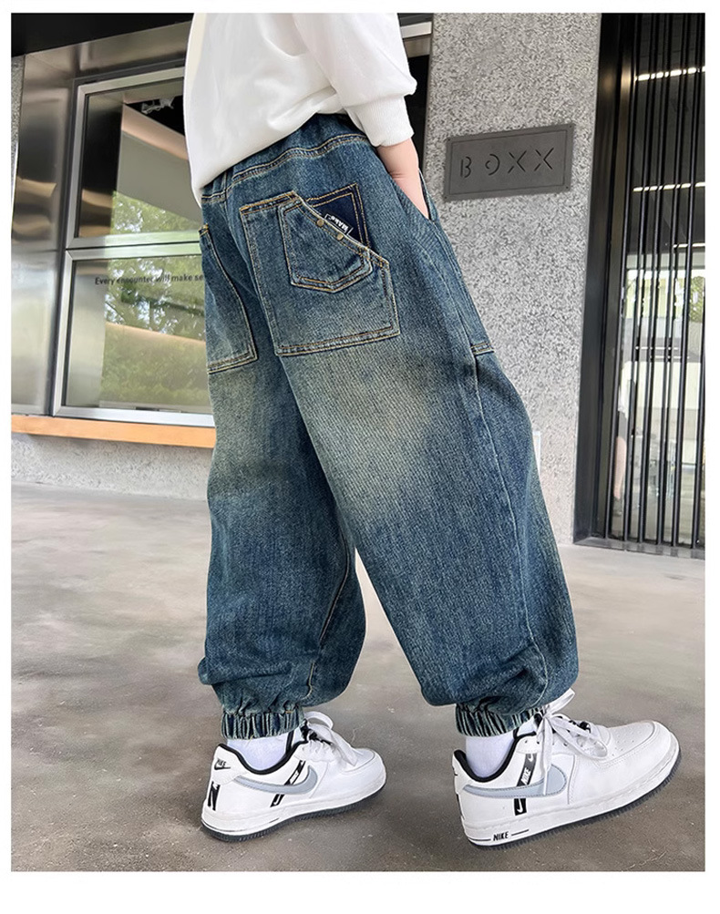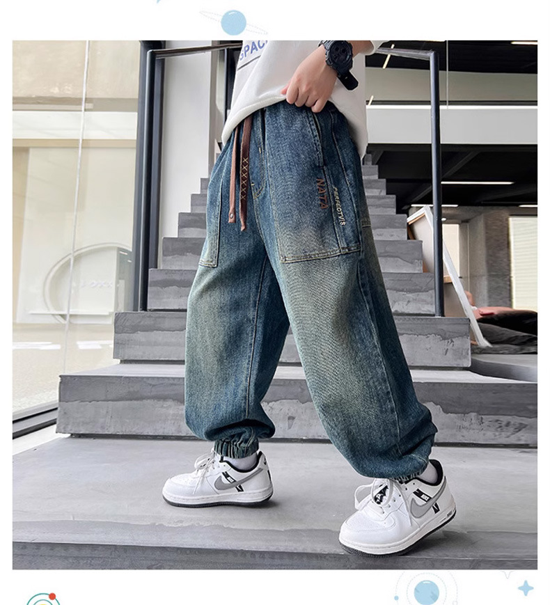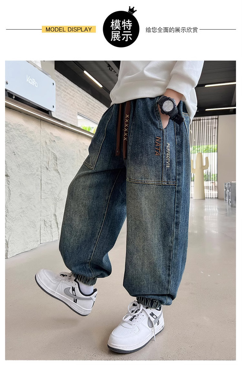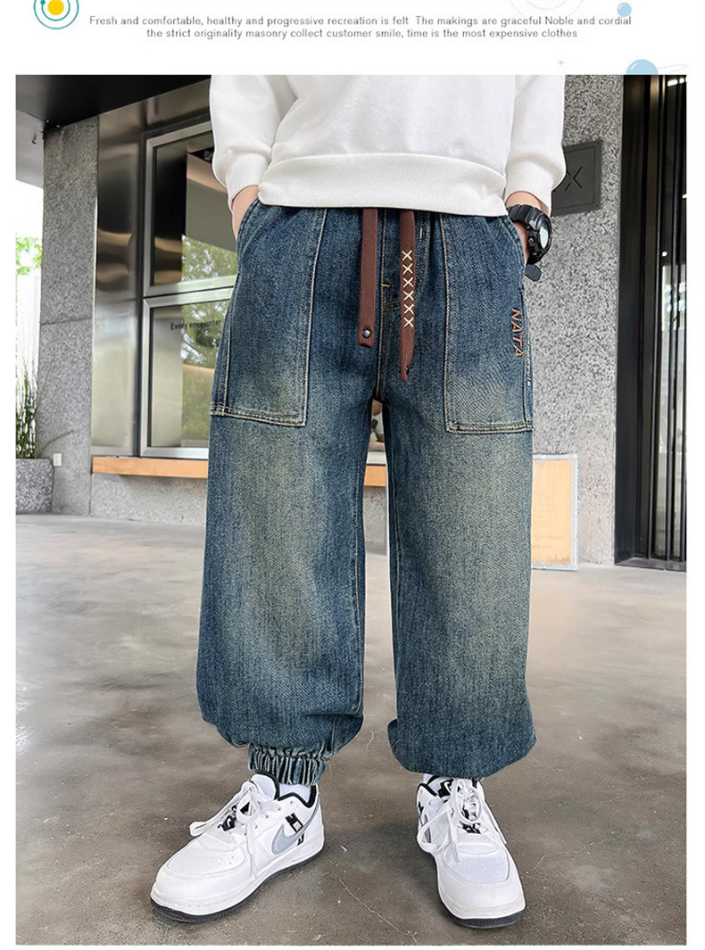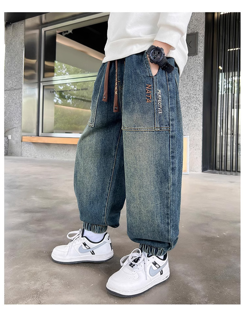 男の子用デニムパンツ 春秋2025 子供用パンツ 裏起毛 大きめサイズ ゆったりストレートパンツ 男の子 韓国風 人気ブランド