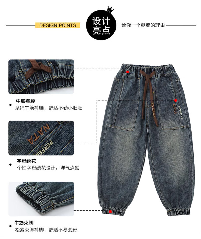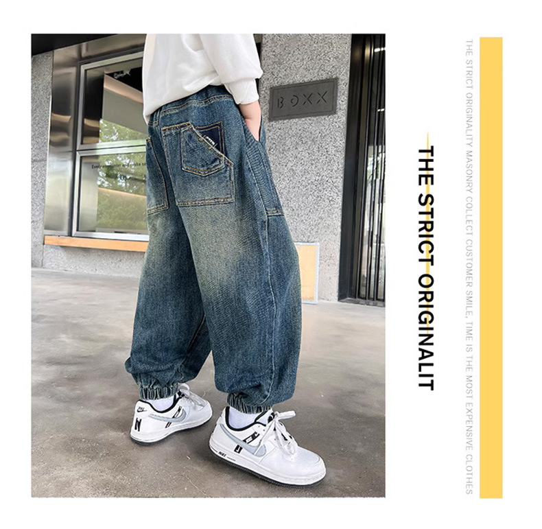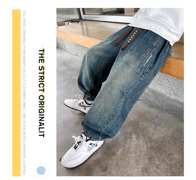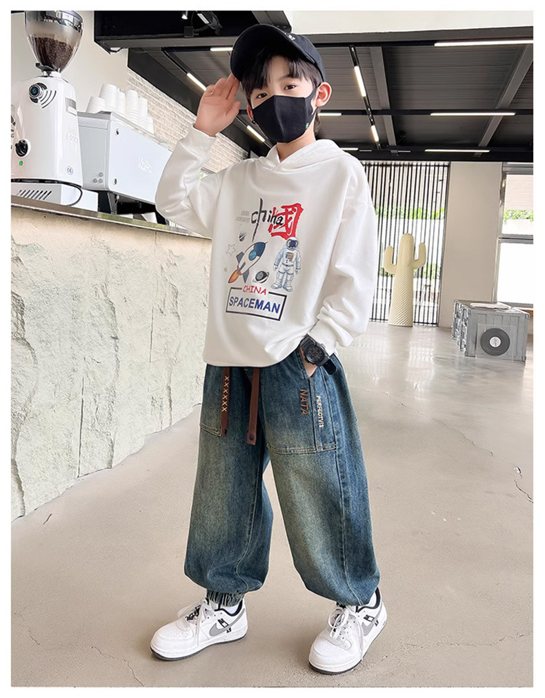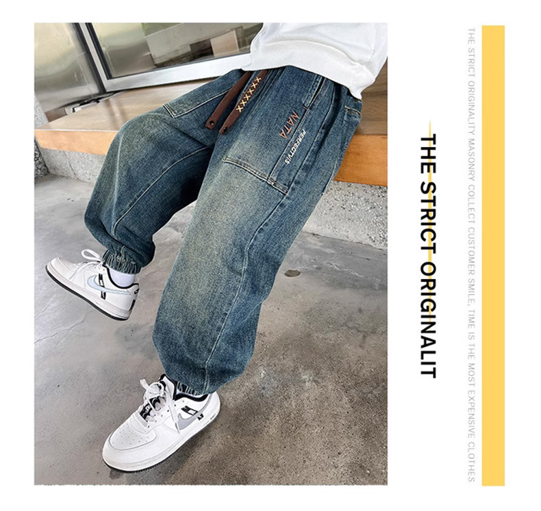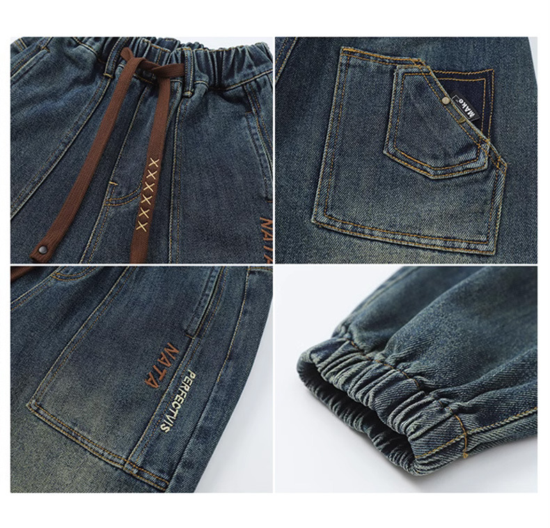 男の子用デニムパンツ 春秋2025 子供用パンツ 裏起毛 大きめサイズ ゆったりストレートパンツ 男の子 韓国風 人気ブランド