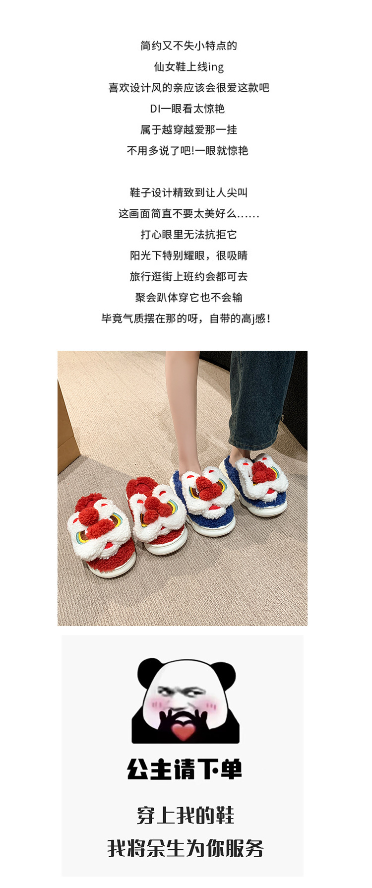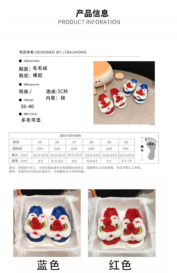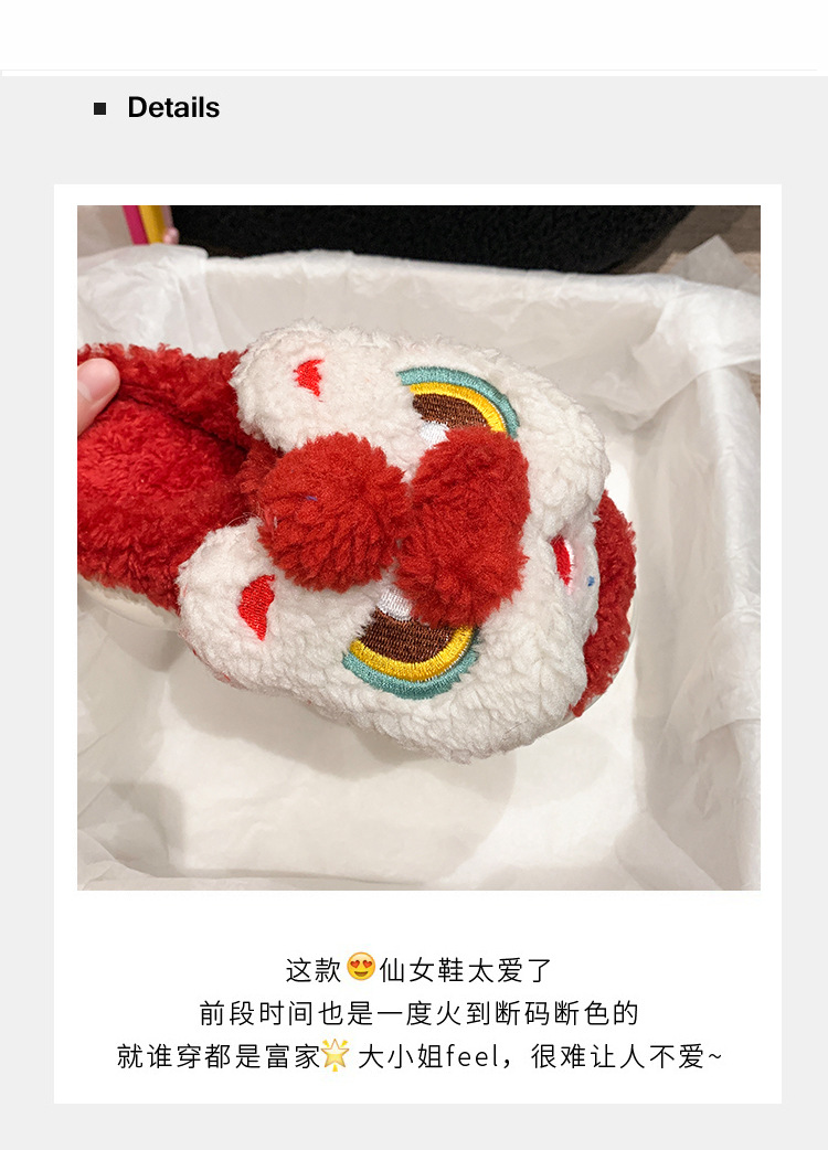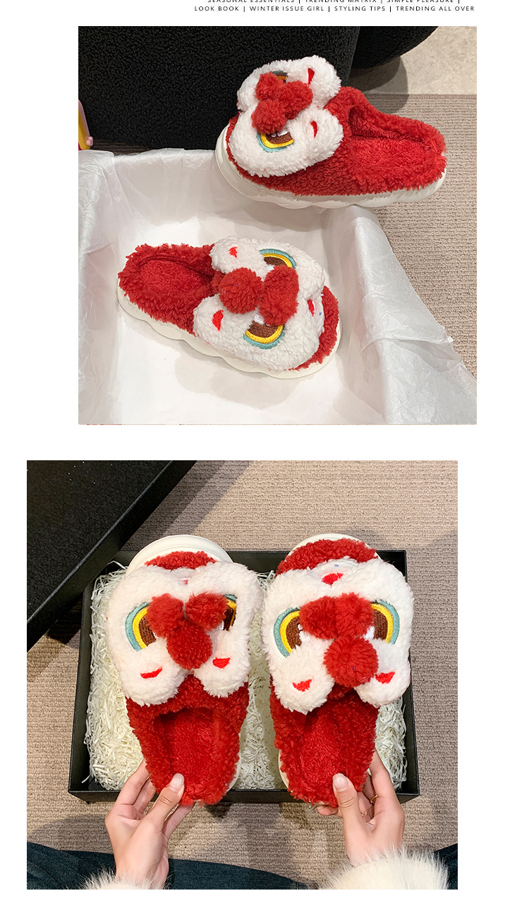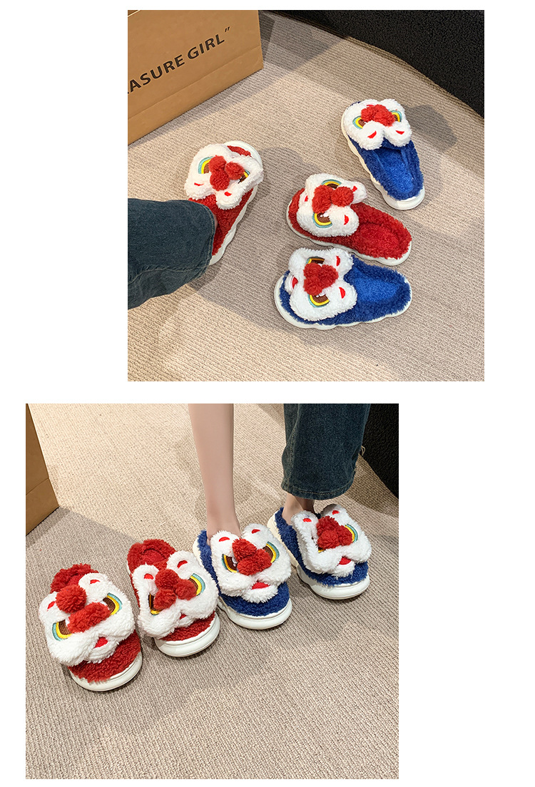 目を覚ますライオンの綿のスリッパの女性の冬のバッグと2024の新型の室内の民族の国の潮の保温のぬいぐるみのスリッパの冬