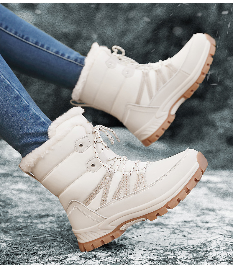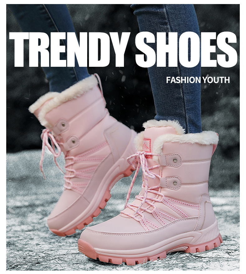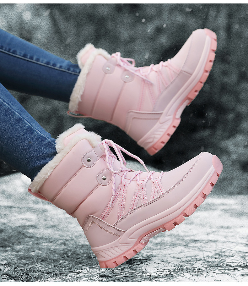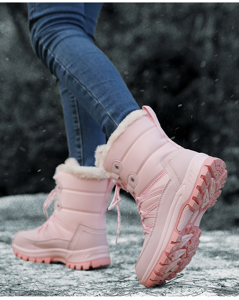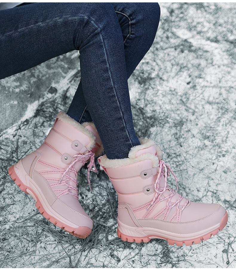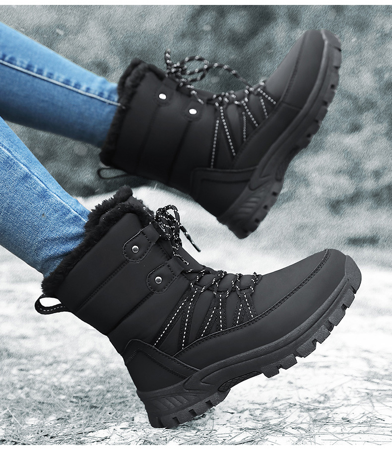 女性の冬の雪の靴のぬいぐるみの保温綿の靴の耐摩耗性の運動の屋外の高い組のひもの大きいサイズの越境の女性の靴