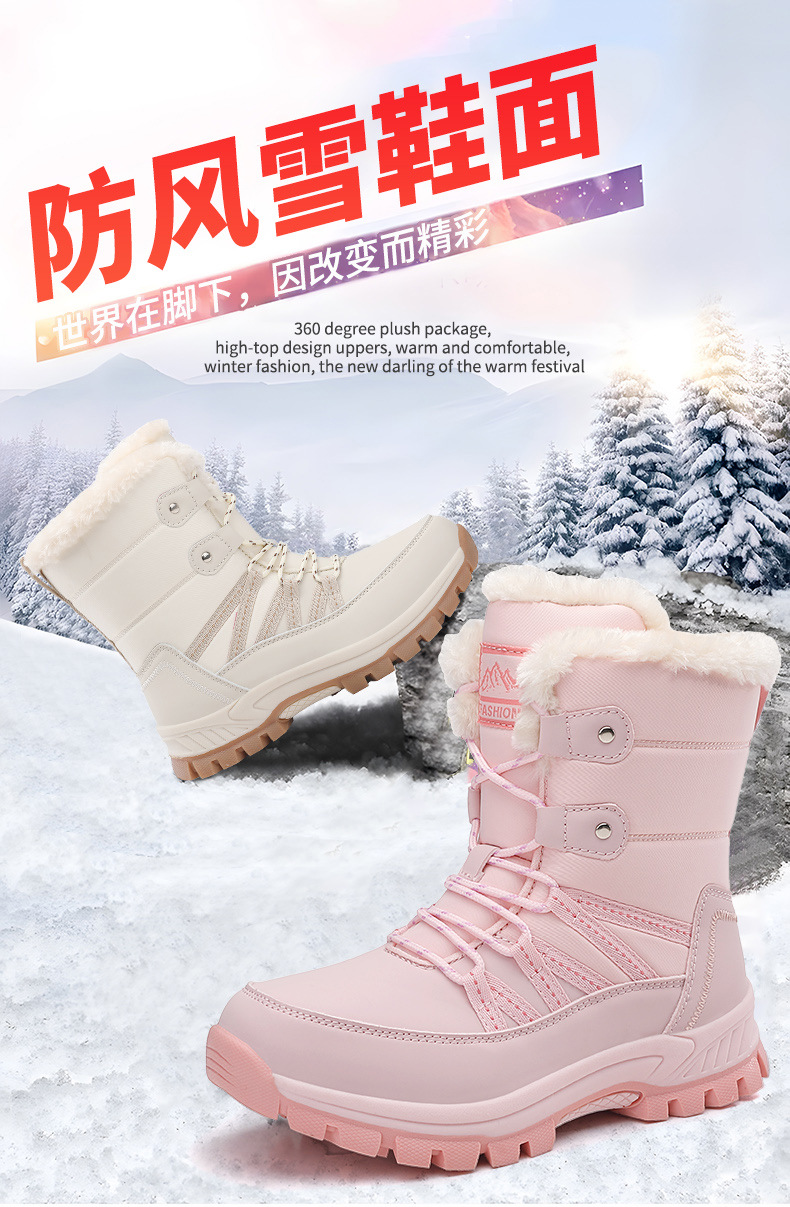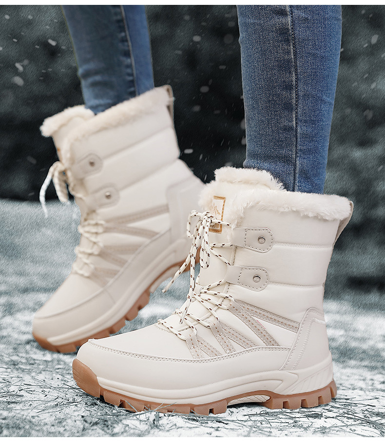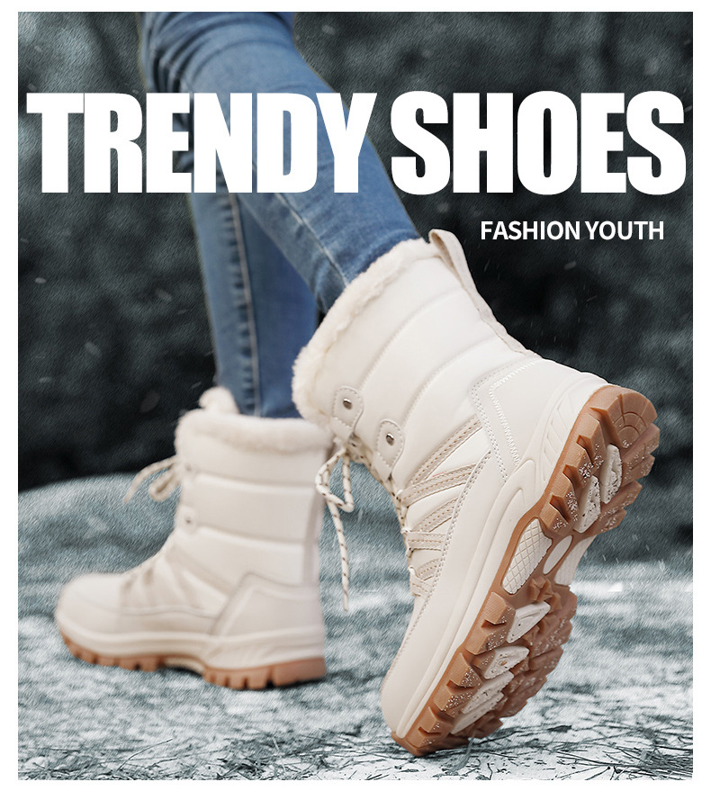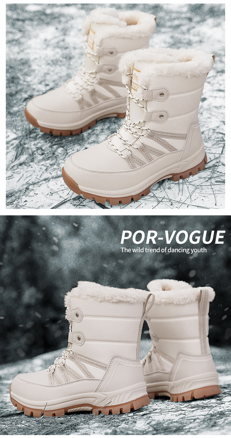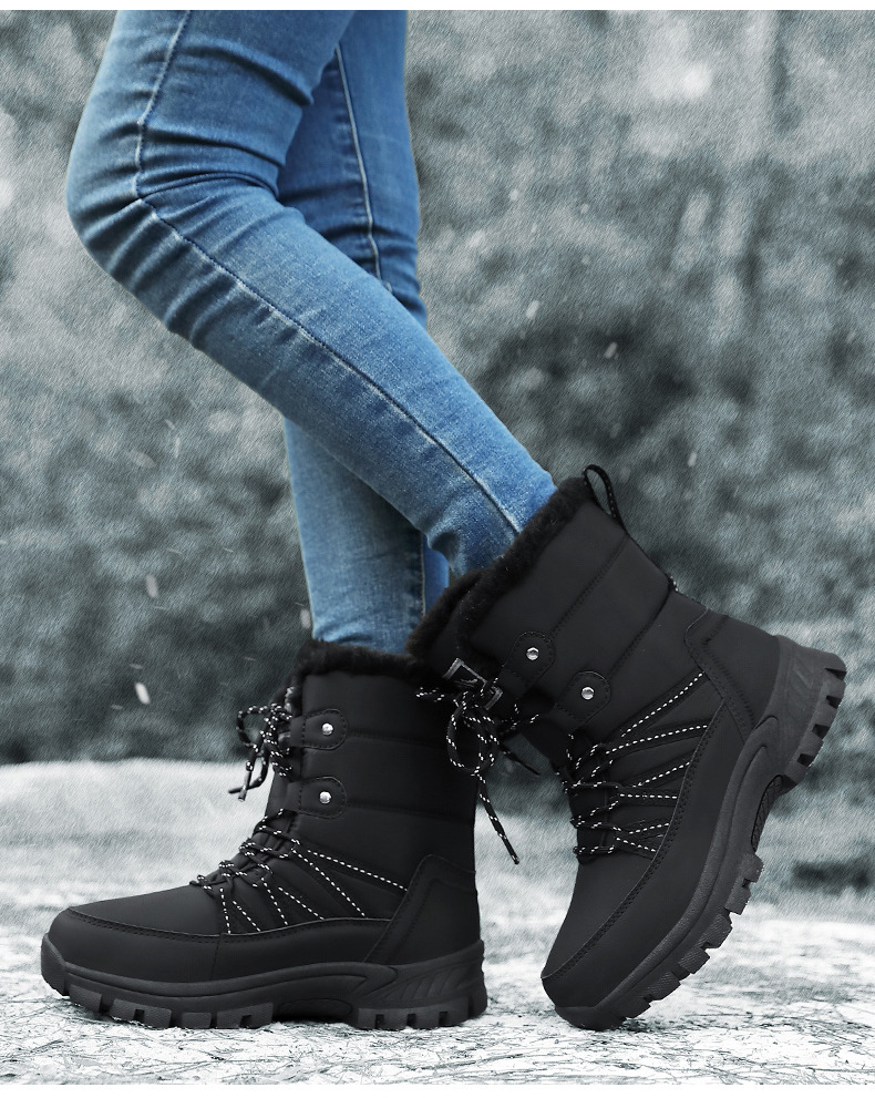 女性の冬の雪の靴のぬいぐるみの保温綿の靴の耐摩耗性の運動の屋外の高い組のひもの大きいサイズの越境の女性の靴