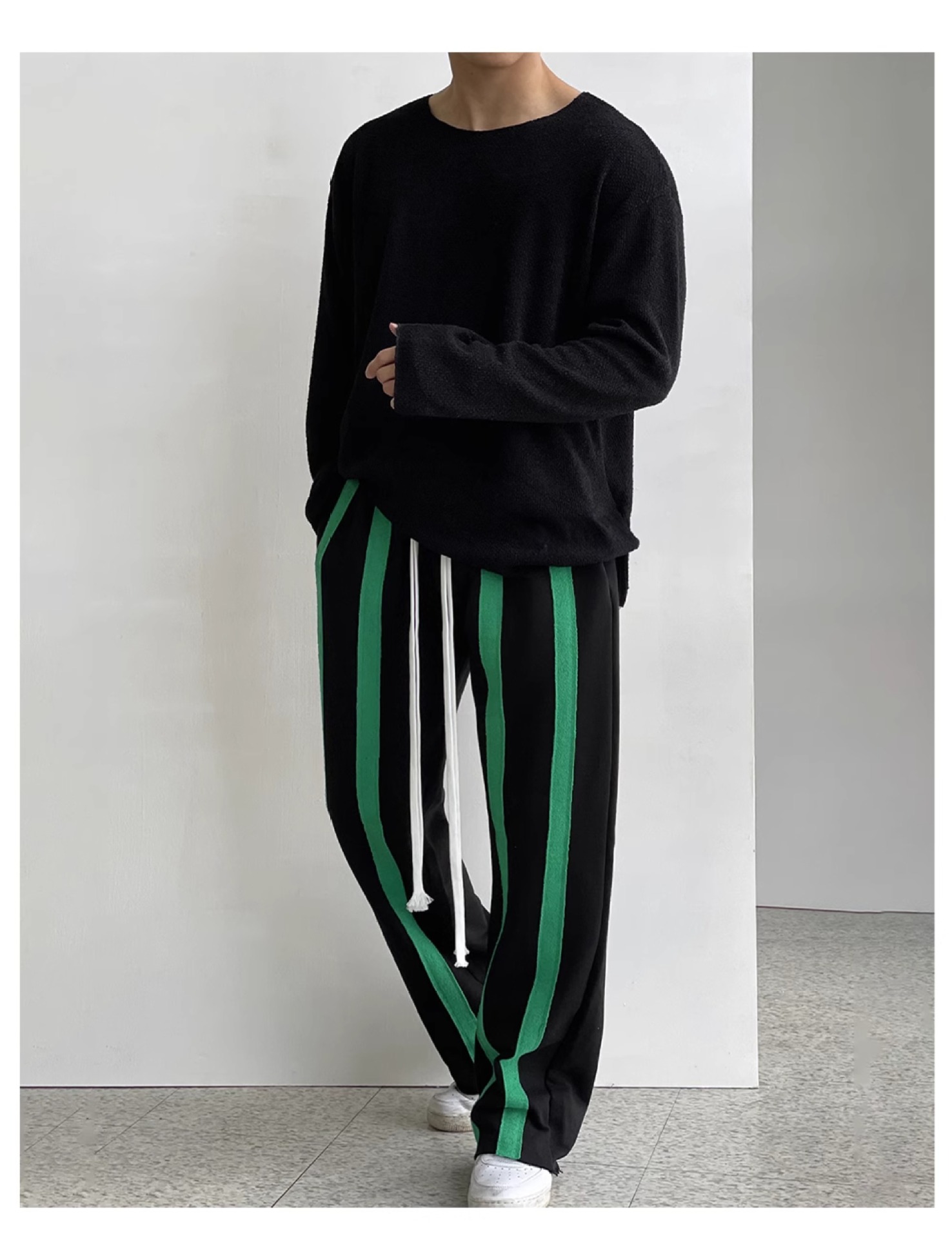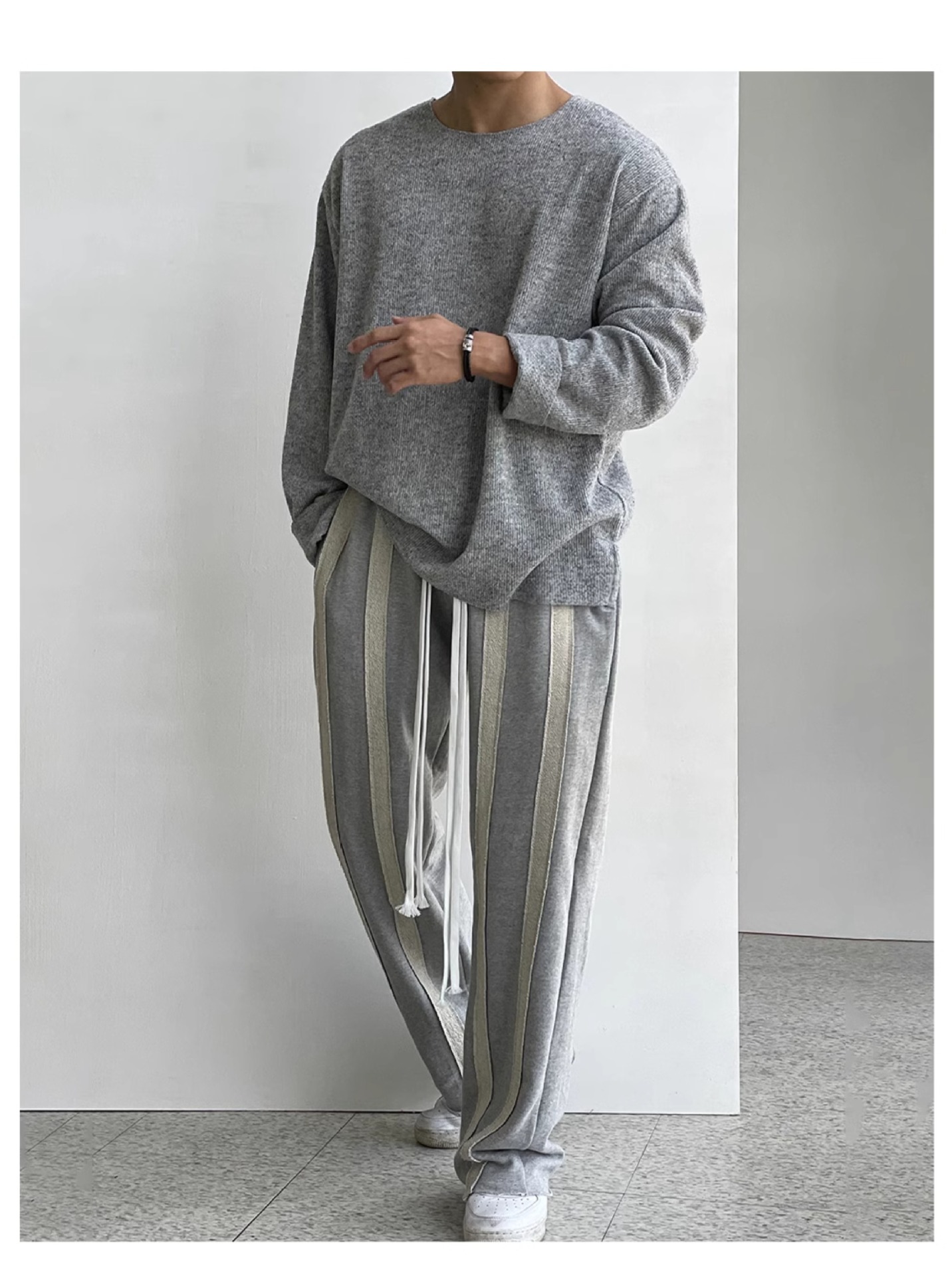 怠惰なリラックス感は、低丸首長袖の男性tシャツを着て、カジュアルで冷たい感じの上着を着ています。