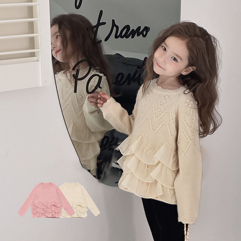 オフホワイト【F415 ガールズ3レースプルオーバー】,ピンク【F415 ガールズ3レースプルオーバー】