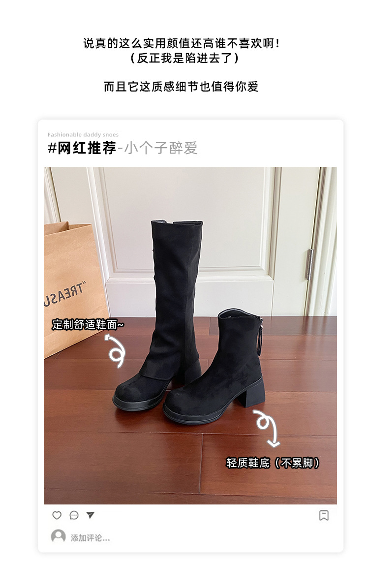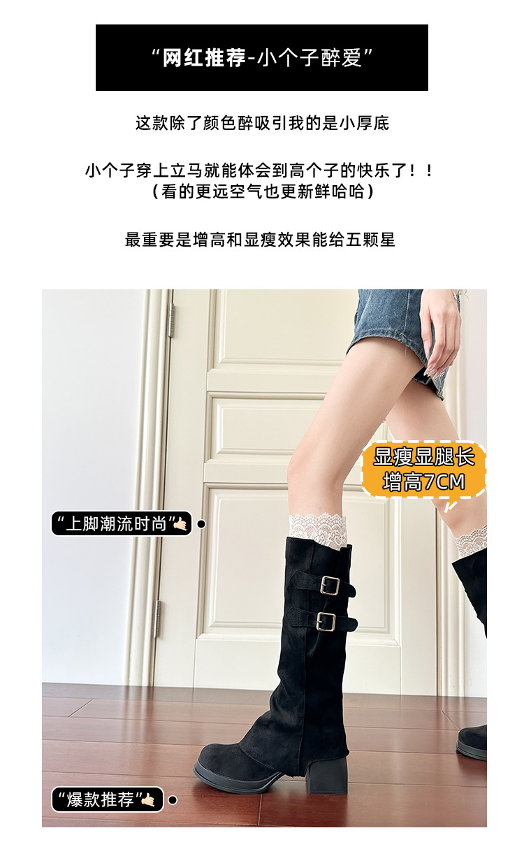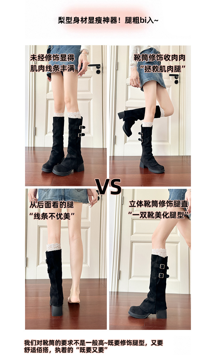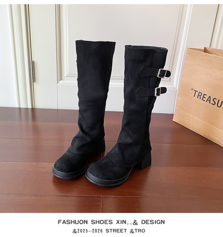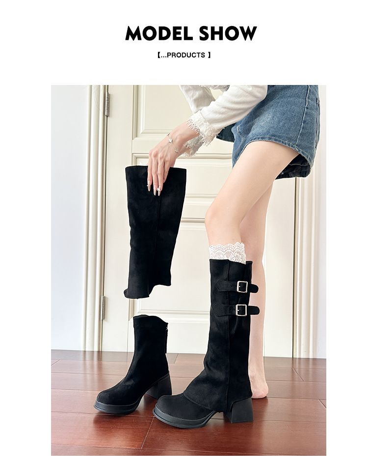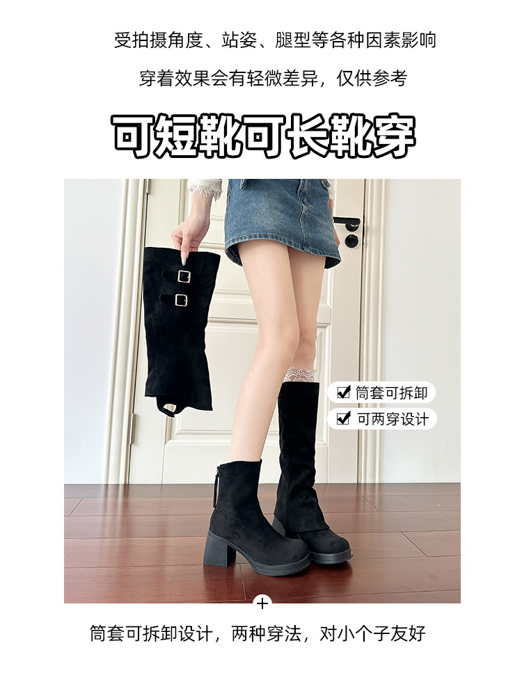 2wayロングブーツ2025秋冬新作取り外し可能パイルブーツ太いハイヒール厚底ハイブーツレトロパンツブーツ